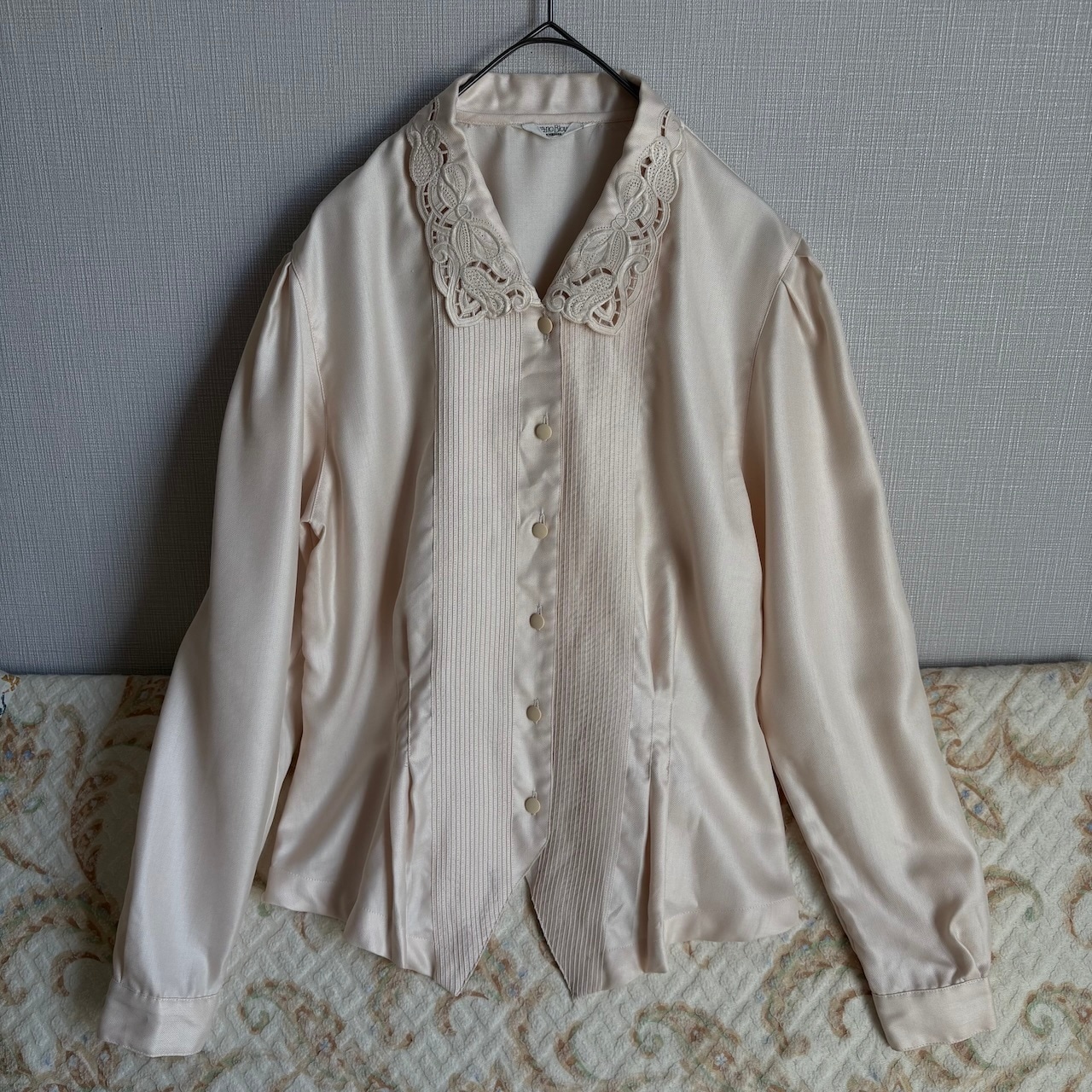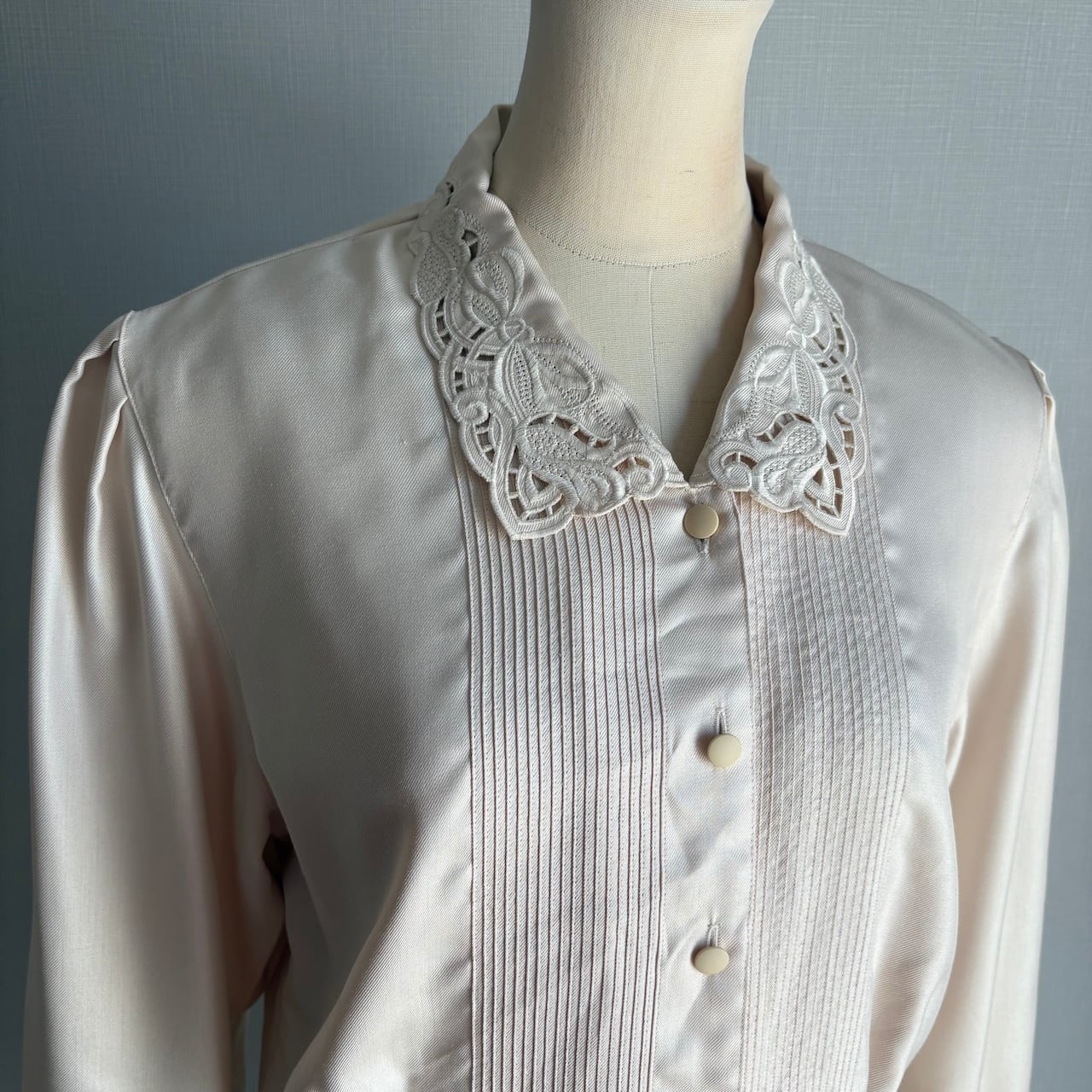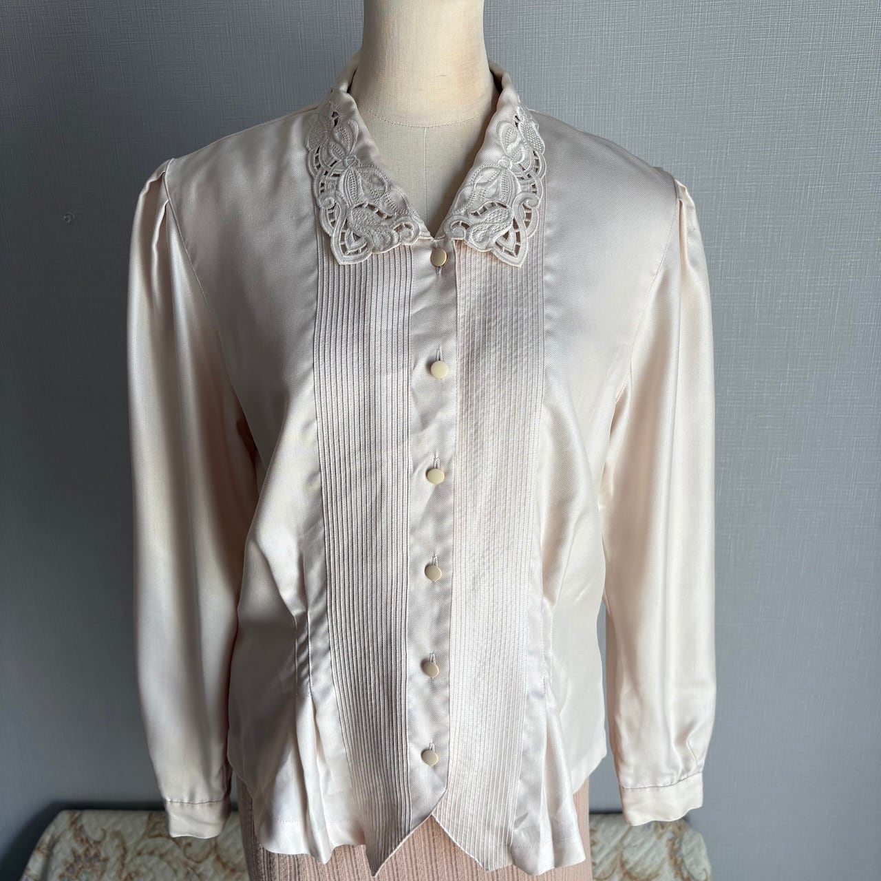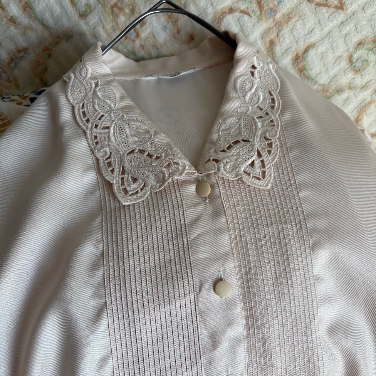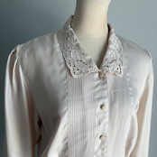 70s 生成色 襟レースブラウス 昭和レトロヴィンテージ古着