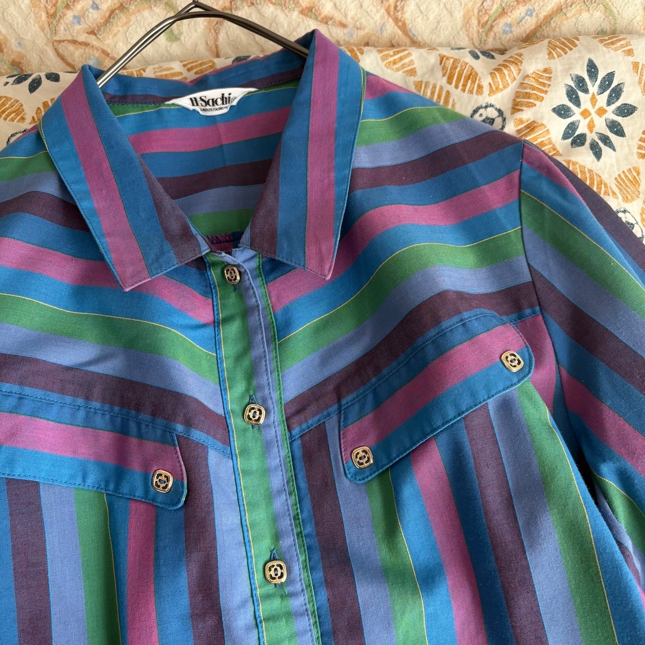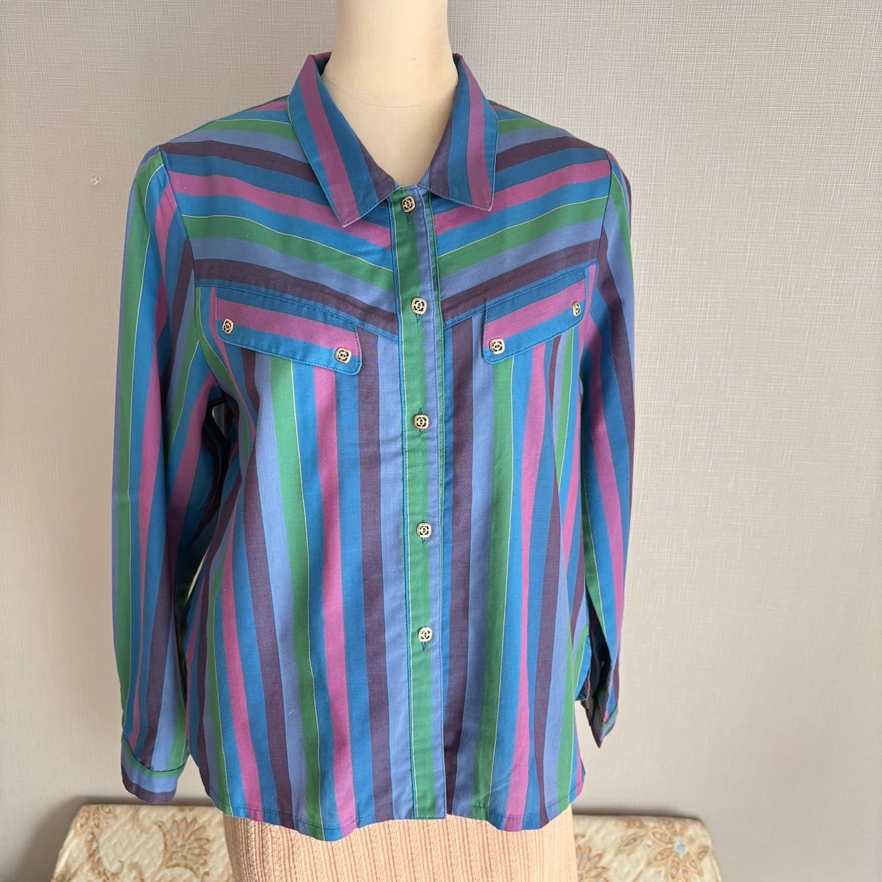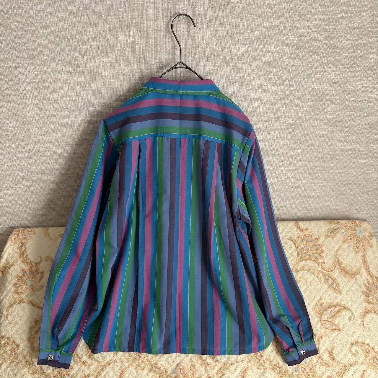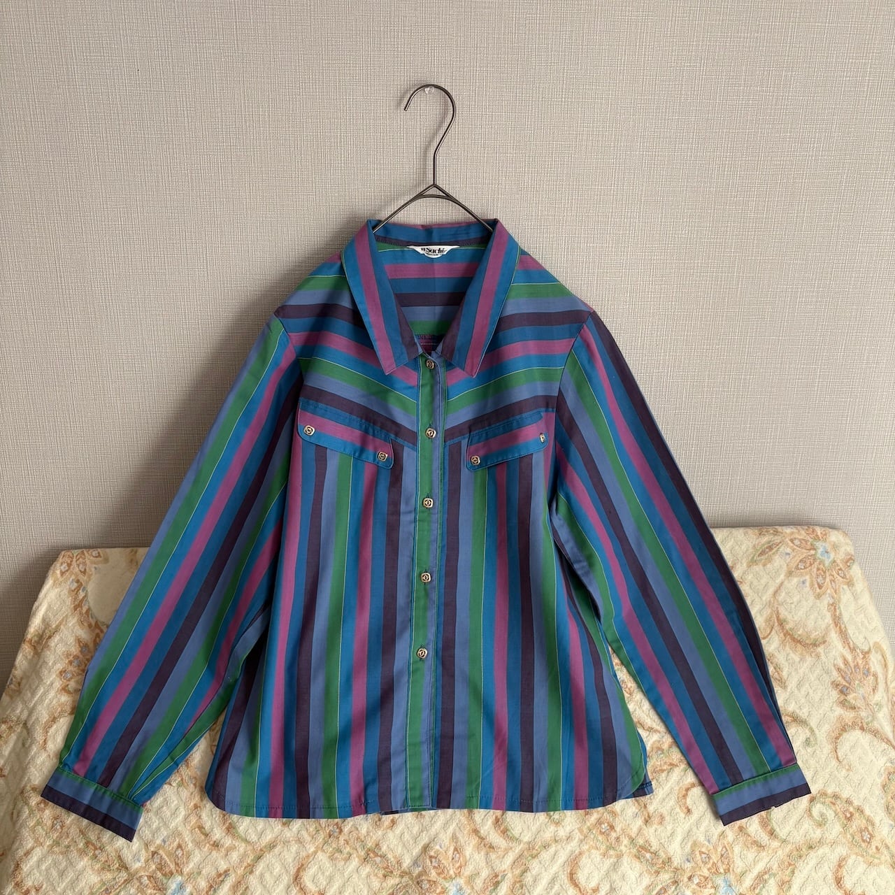 70s レトロなストライプ カラフルブラウス 昭和レトロヴィンテージ古着