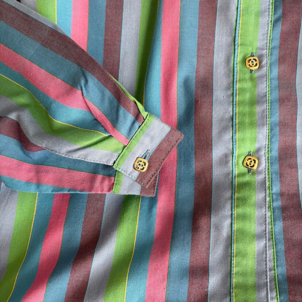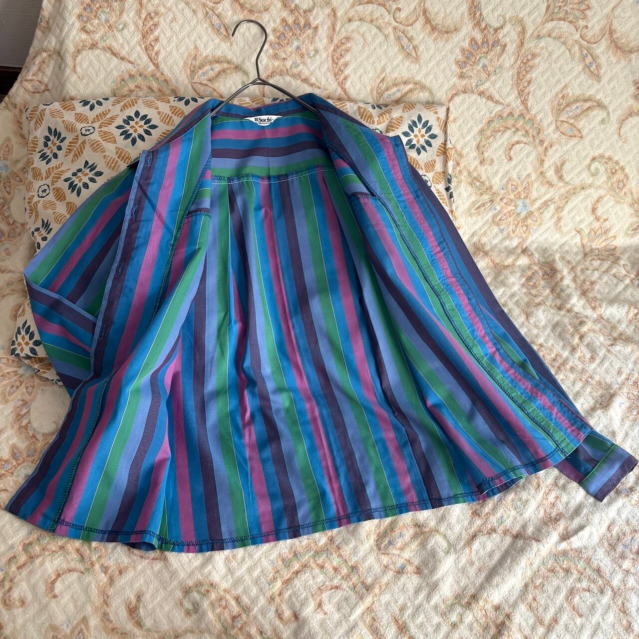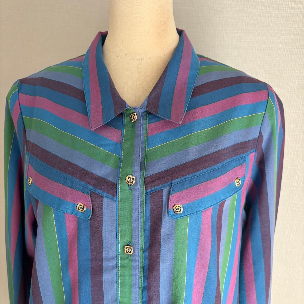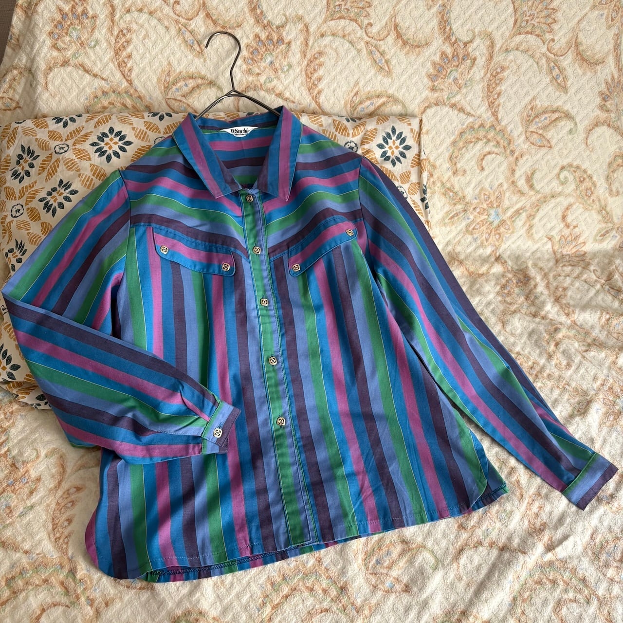 70s レトロなストライプ カラフルブラウス 昭和レトロヴィンテージ古着