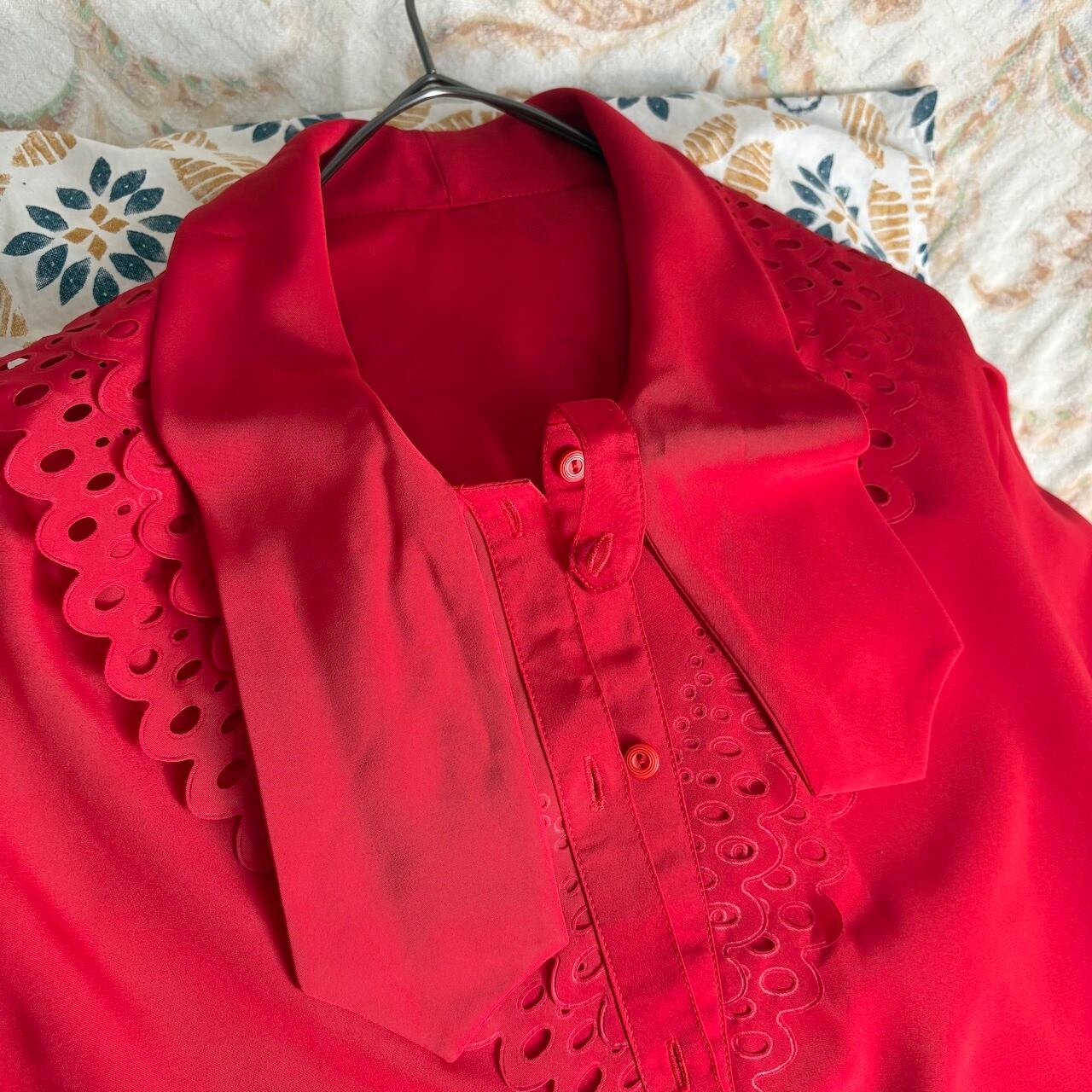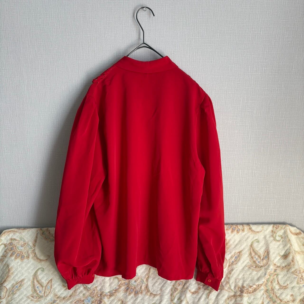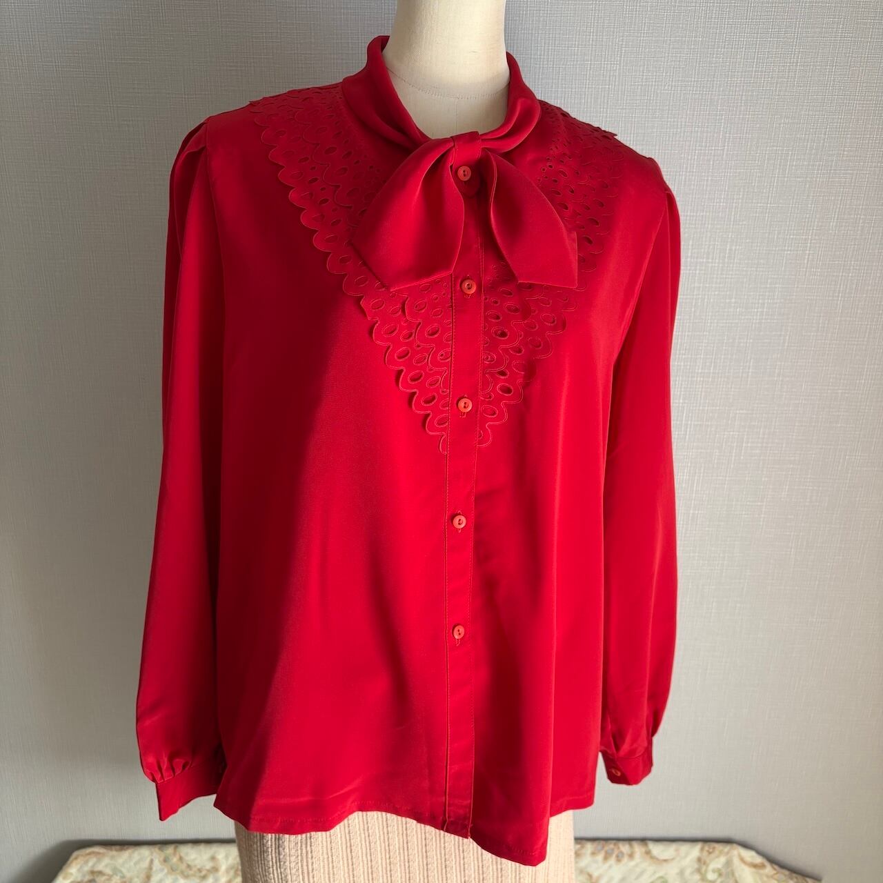 70s ボウタイ 2段フリル 赤いブラウス 昭和レトロヴィンテージ古着