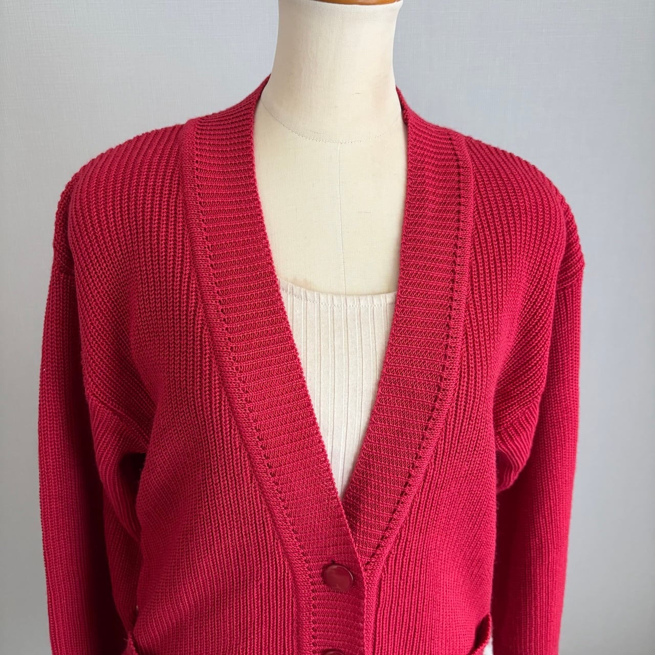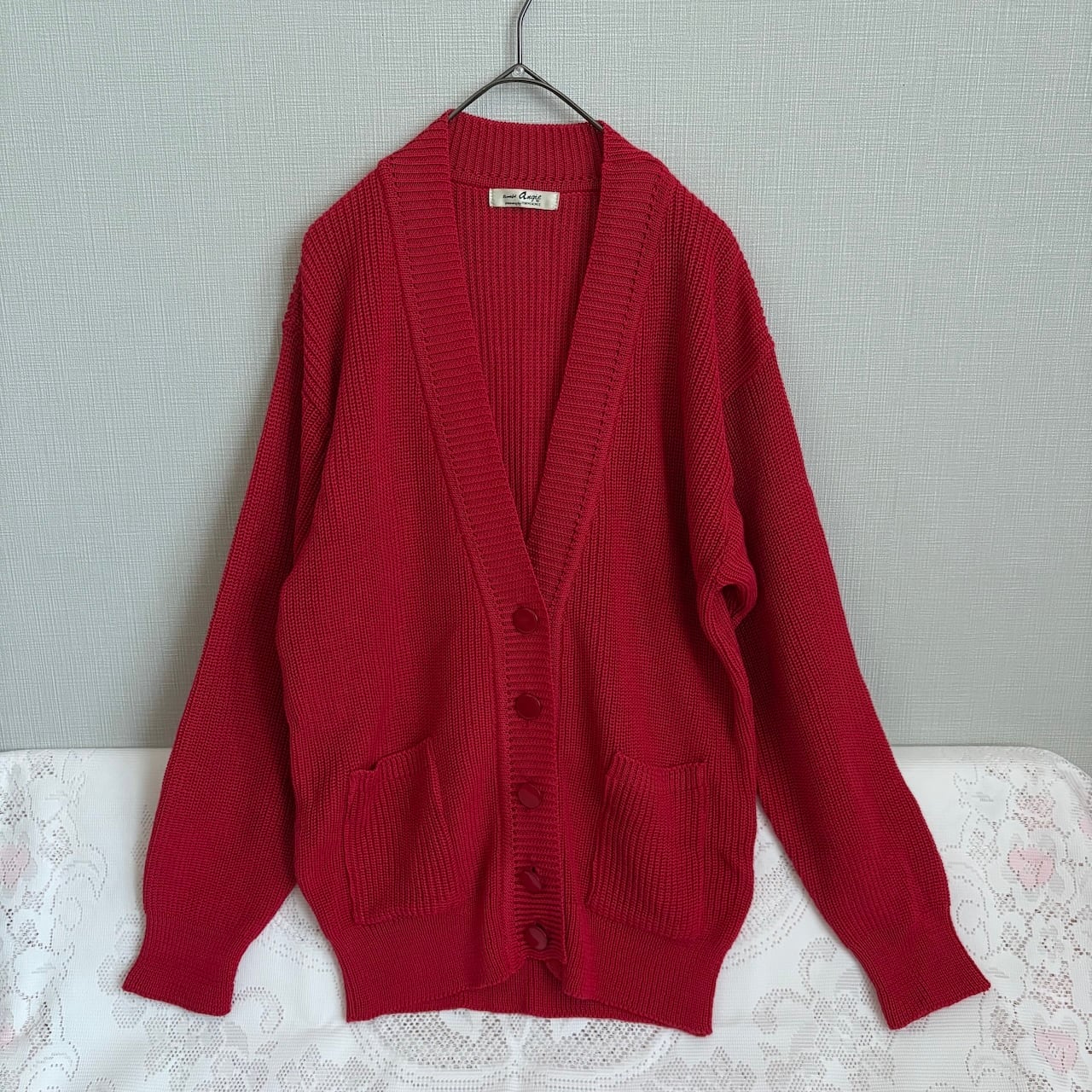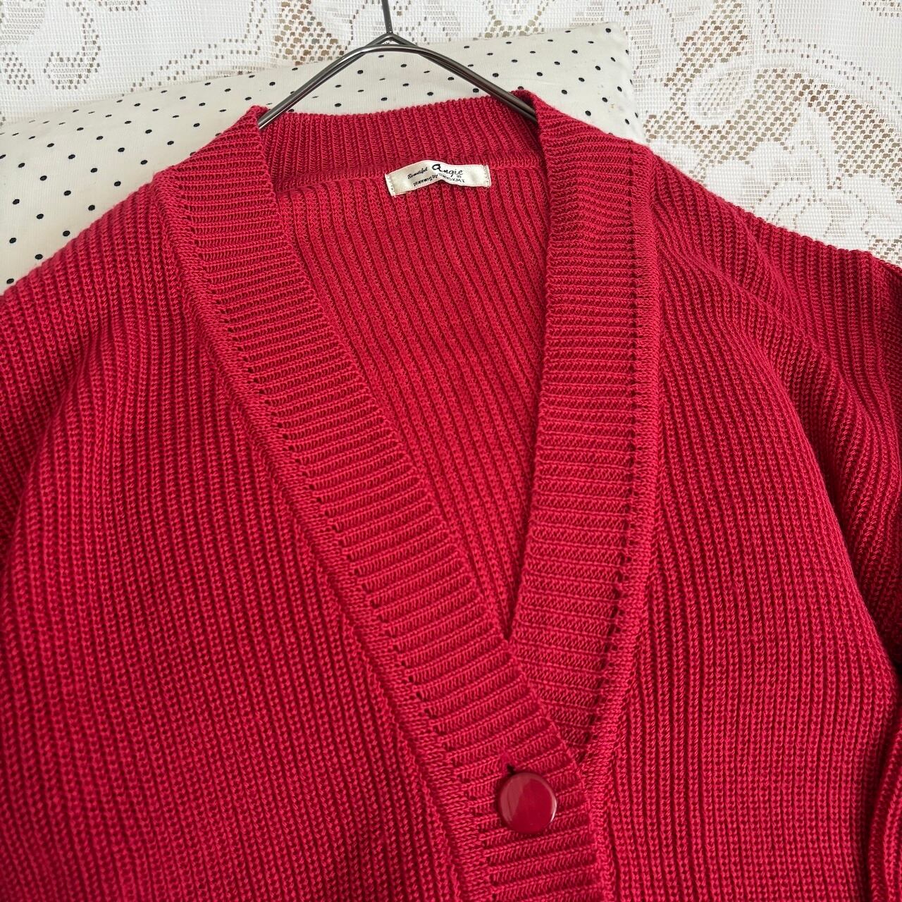 80s ローズピンク サマーニットカーディガン 昭和レトロヴィンテージ古着