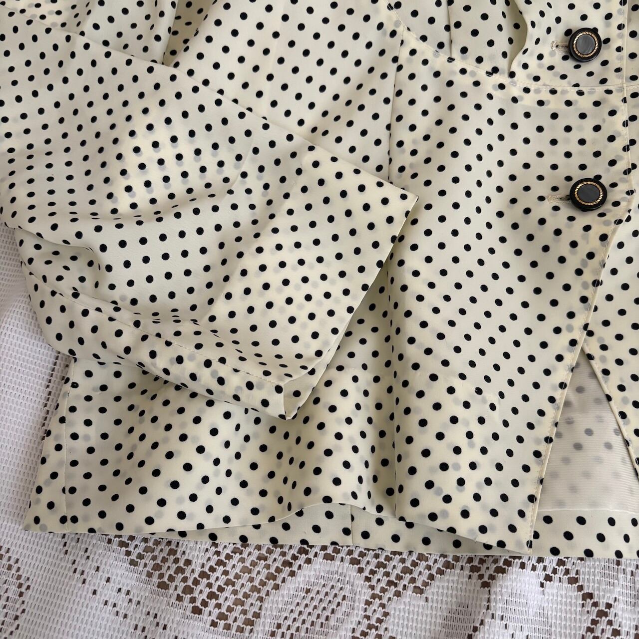 白地に黒の細かいドット柄生地で作られた