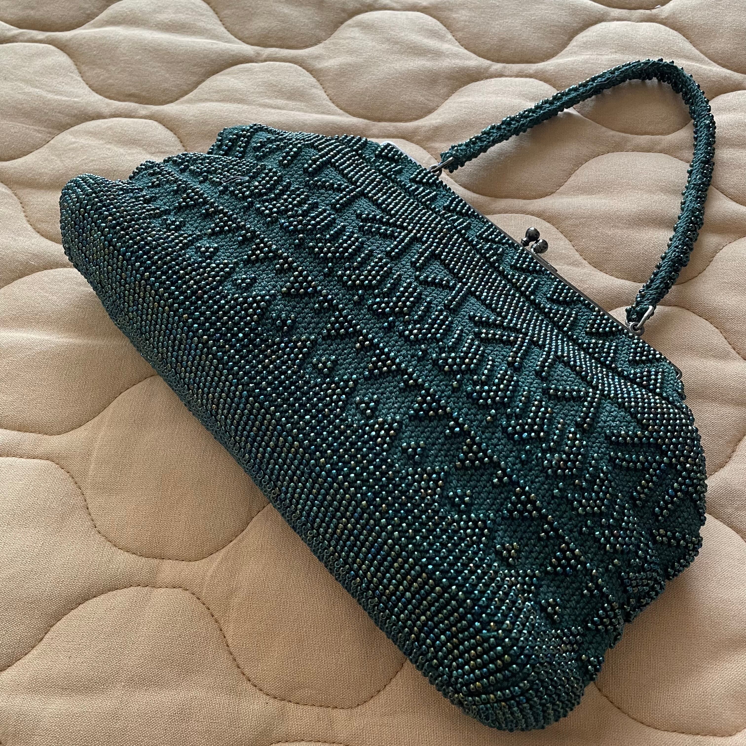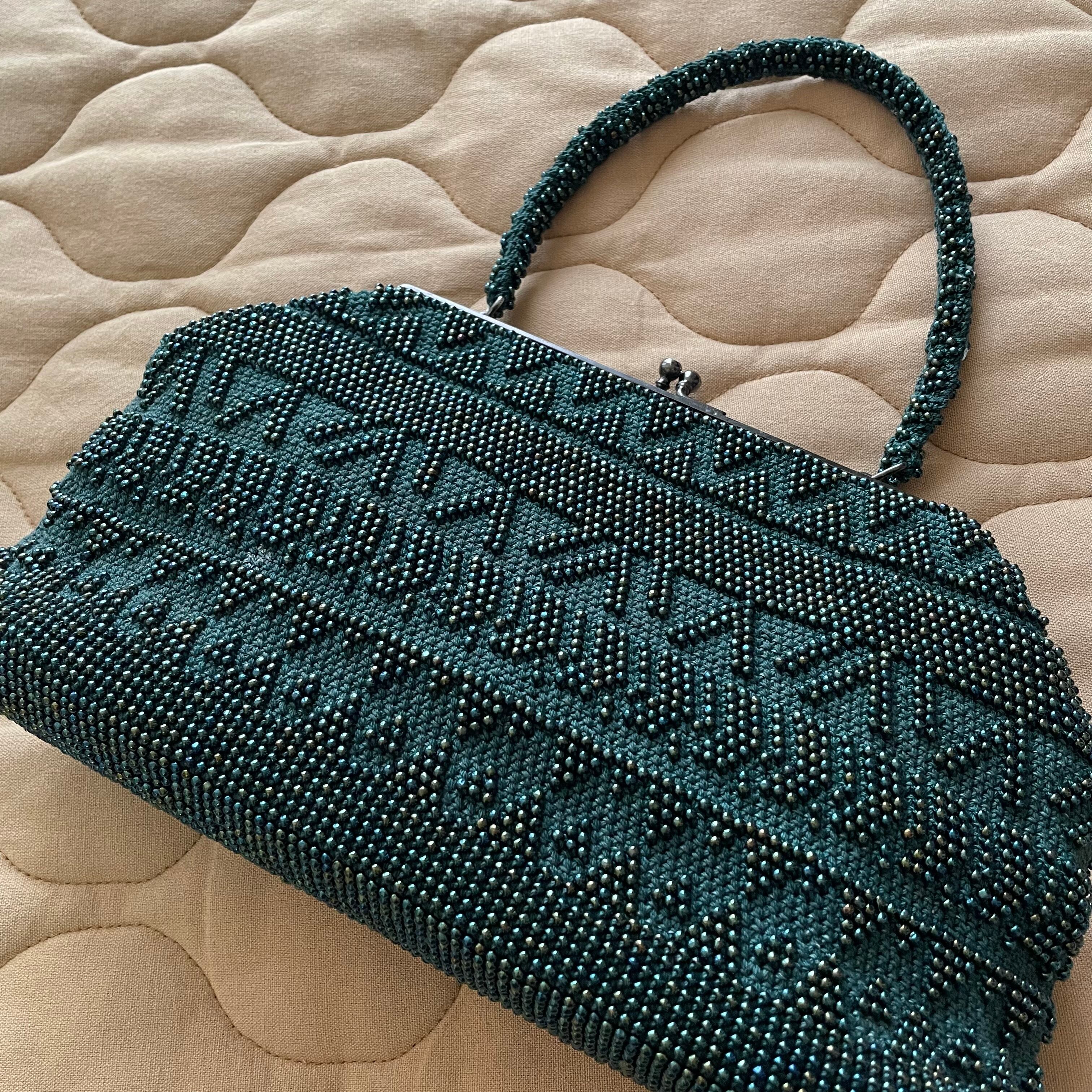深緑色 ビーズバック