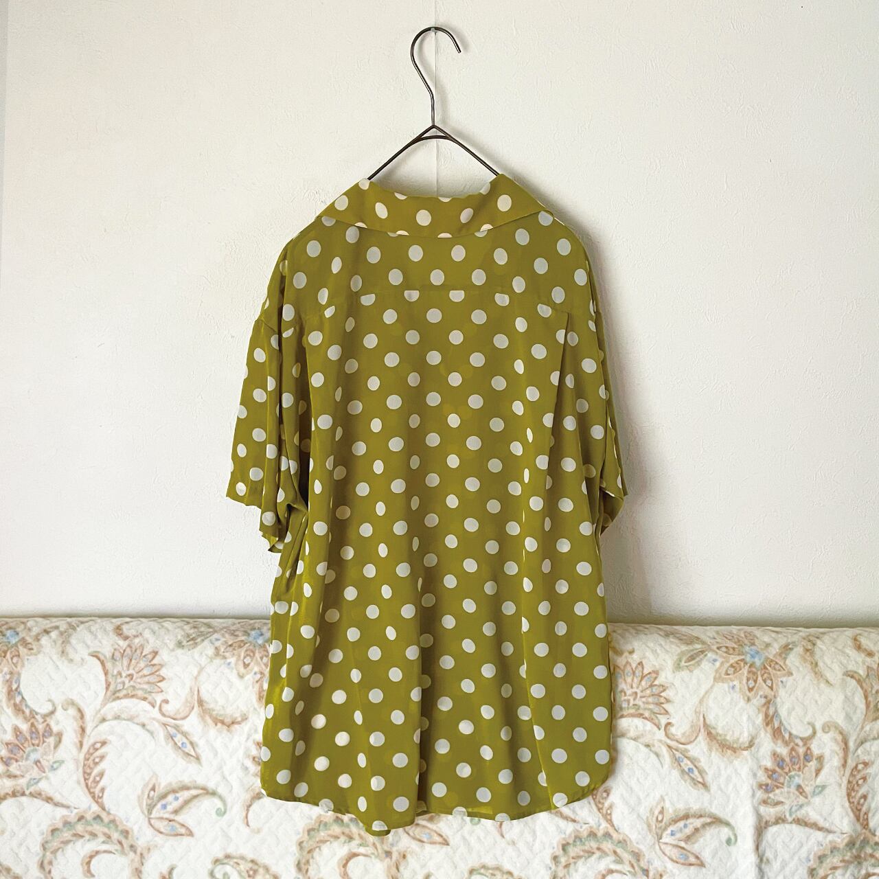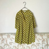 古着 80s 半袖ブラウス ドットマスタード