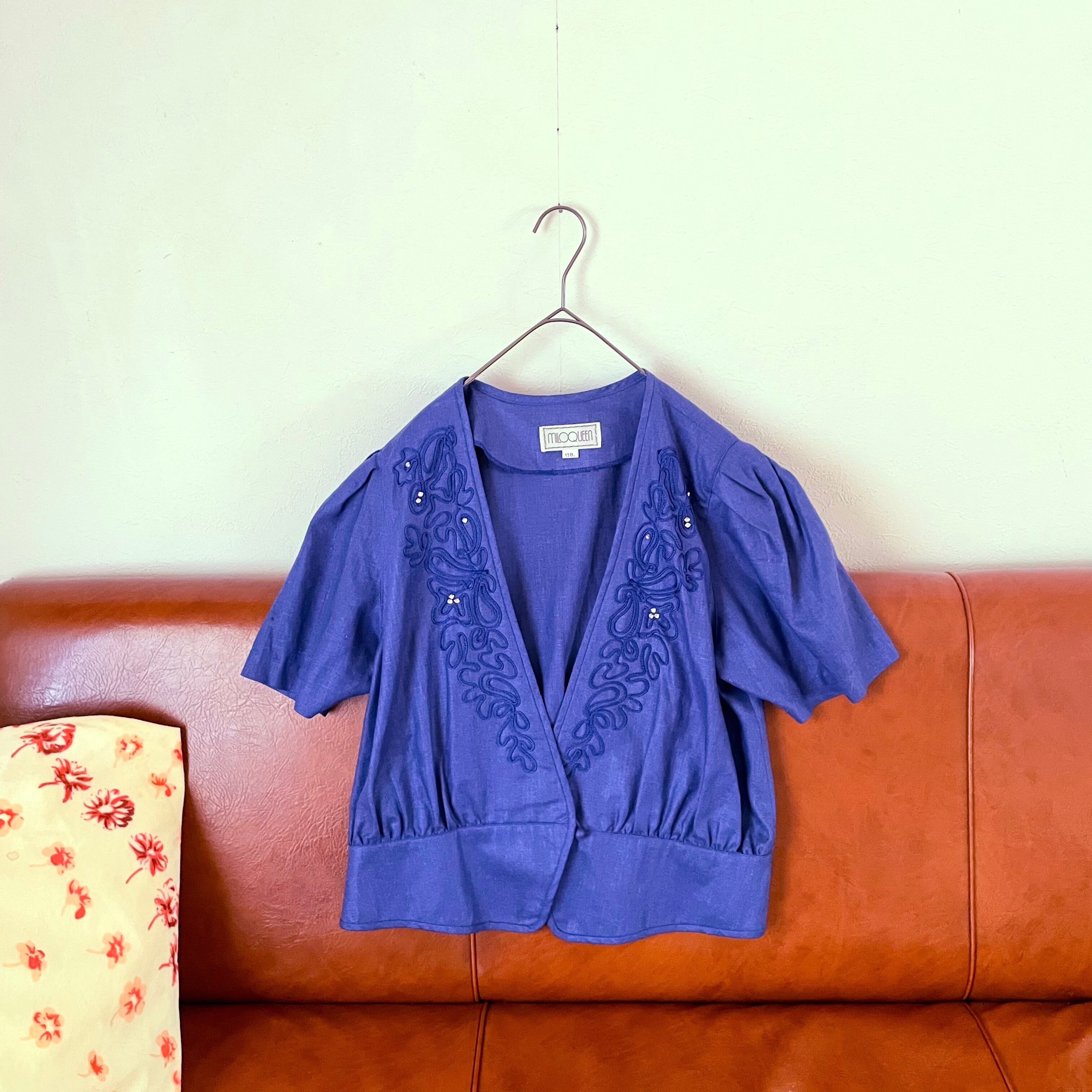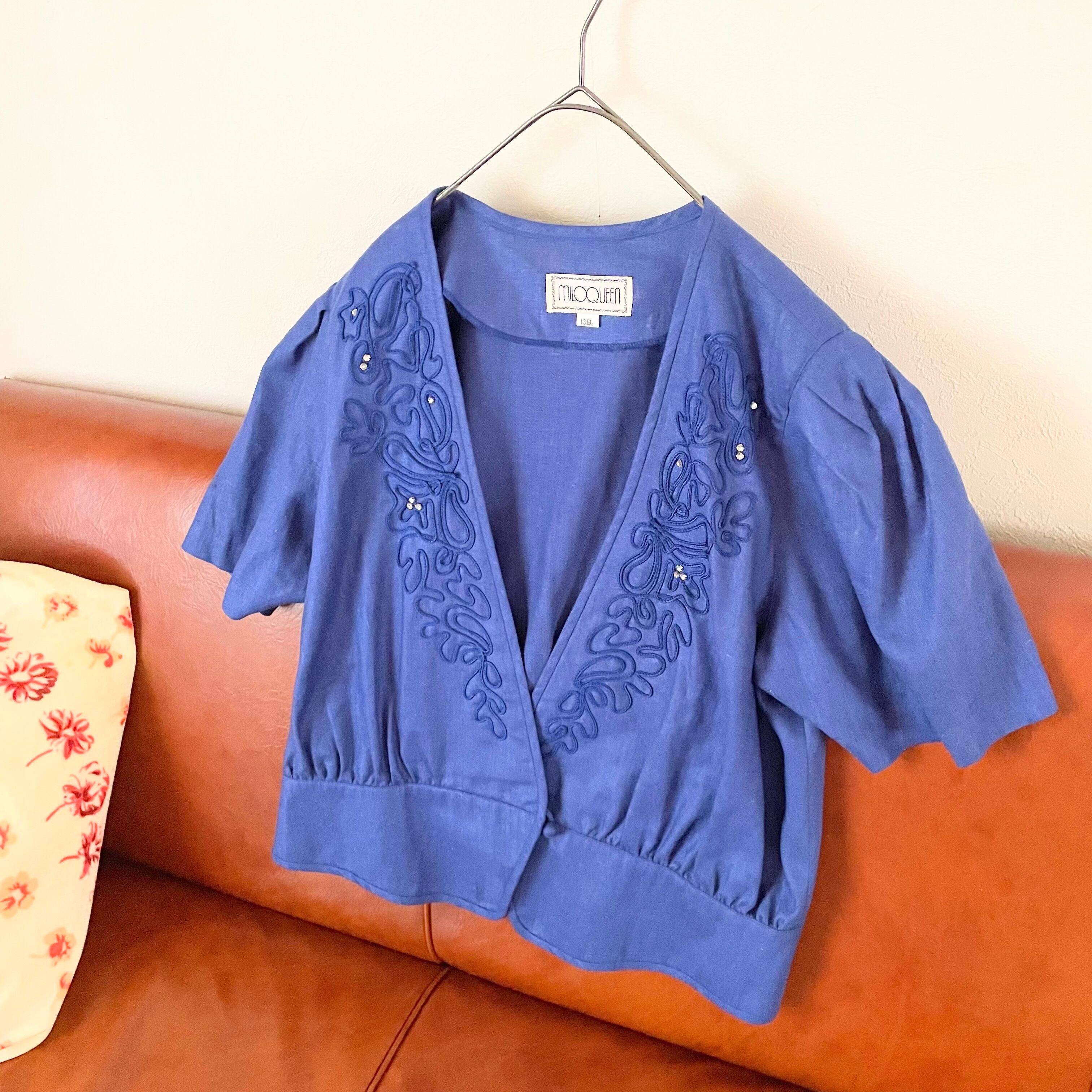 レトロ古着 80s コード刺繍 ネイビー半袖ボレロ