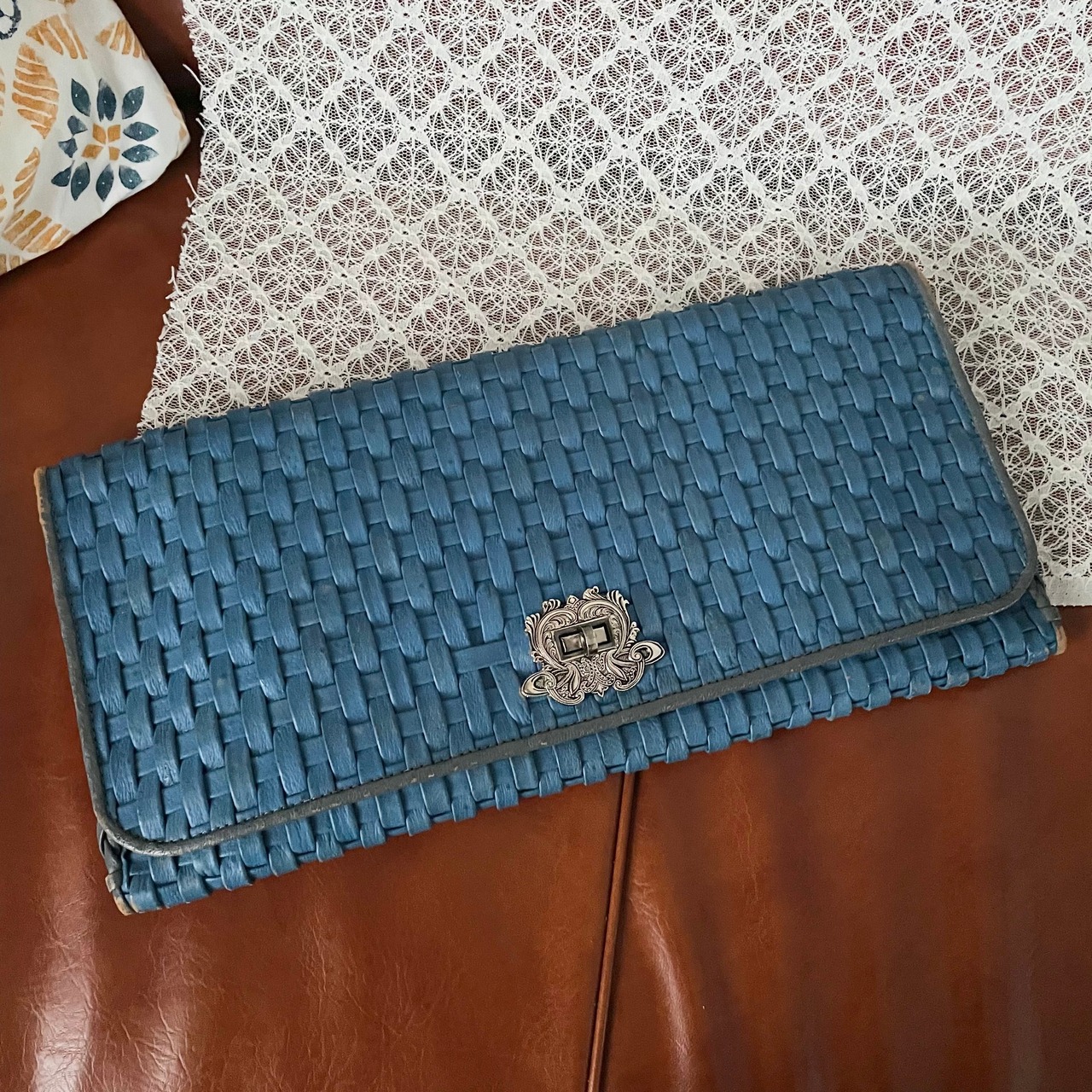 レトロヴィンテージ鞄 クラッチバッグ 空色カゴ風
