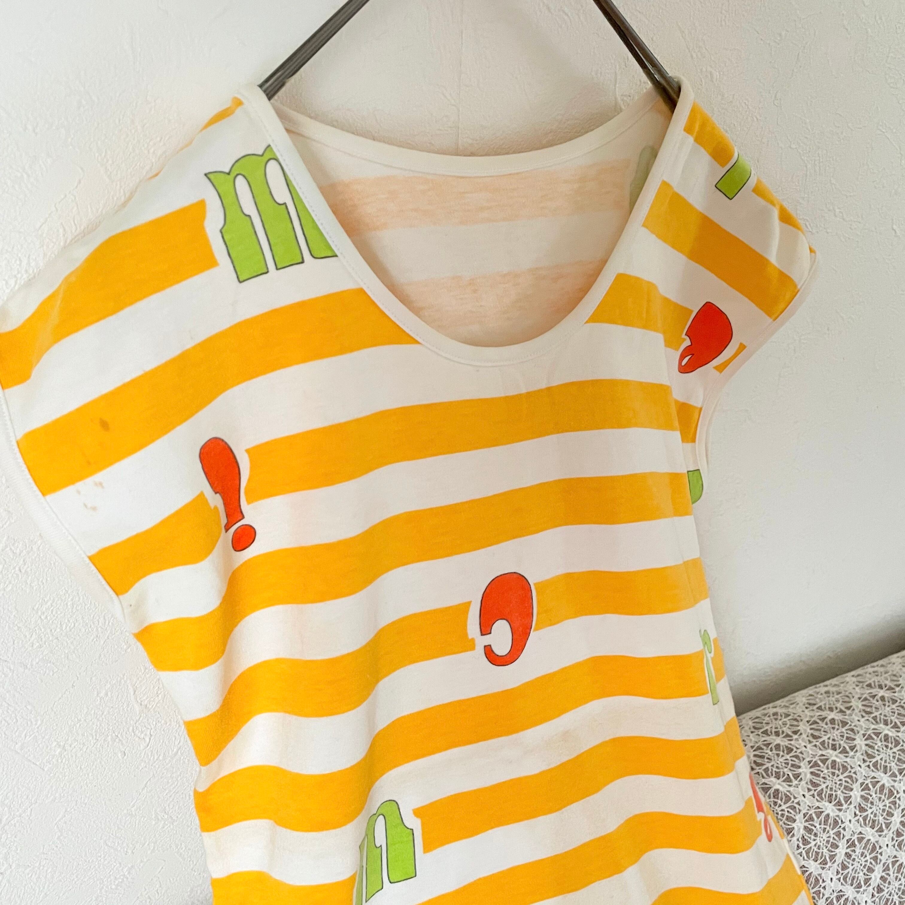 【アウトレット】80s ストライプ アルファベット Tシャツ 昭和レトロヴィンテージ古着