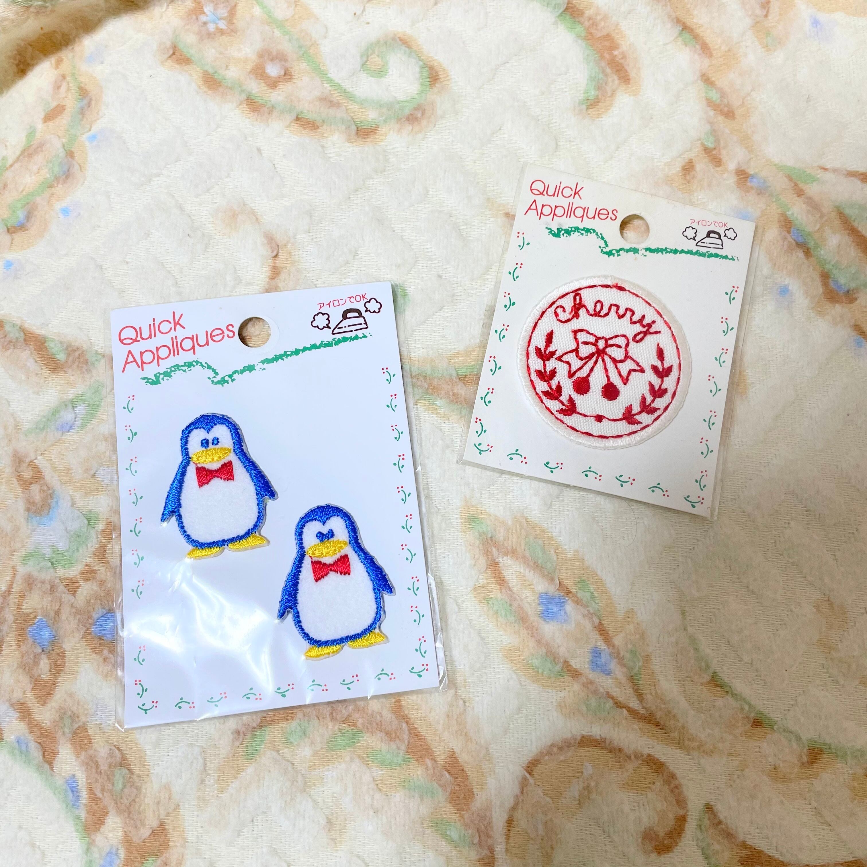 【デッドストック】昭和レトロヴィンテージ雑貨 ワッペン チェリー/ペンギン