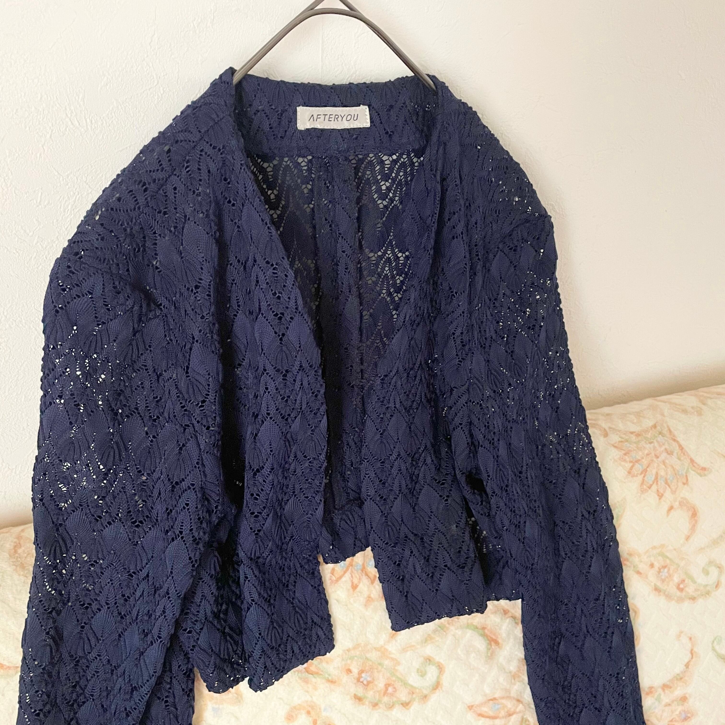 80s 長袖 レースボレロ ネイビー 昭和レトロヴィンテージ古着
