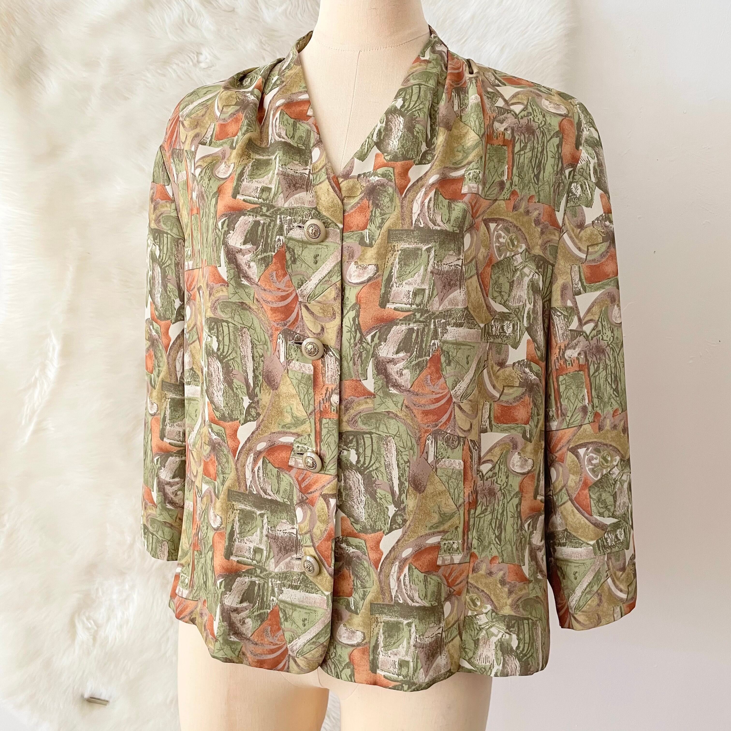 70s レトロ柄薄手 七分袖ブラウス 昭和レトロヴィンテージ古着