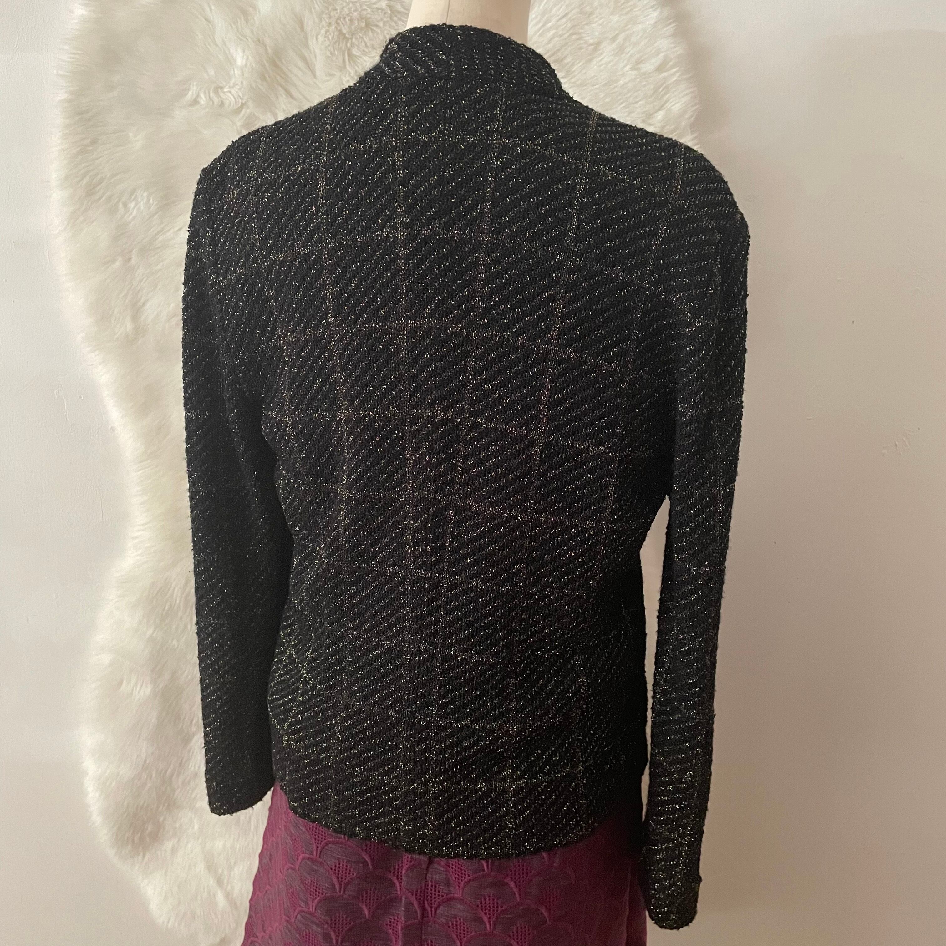 70-80s ラメ格子柄 ニットジャケット 昭和レトロヴィンテージ古着