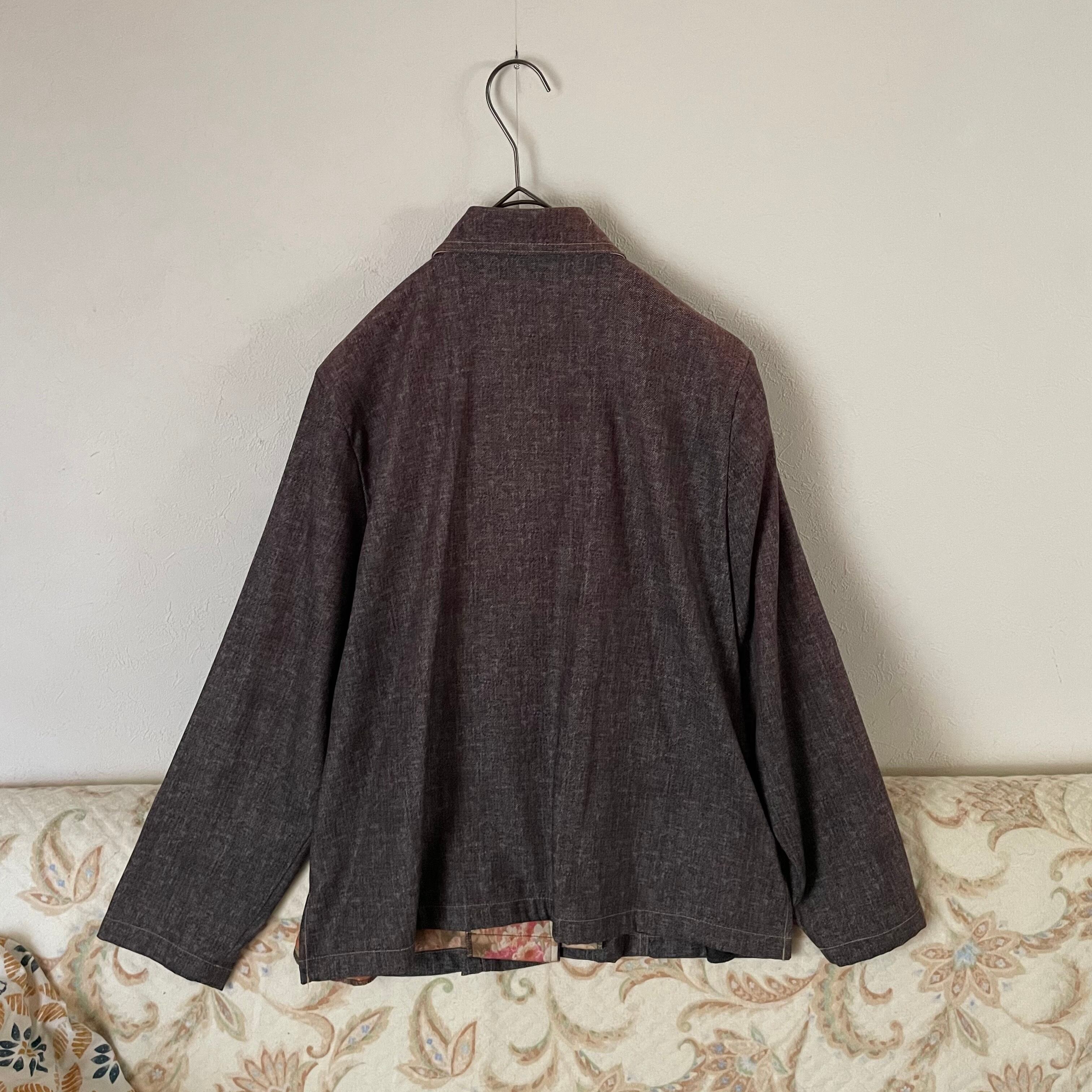90s デニム 裏地花柄 薄手ジャケット昭和レトロヴィンテージ古着