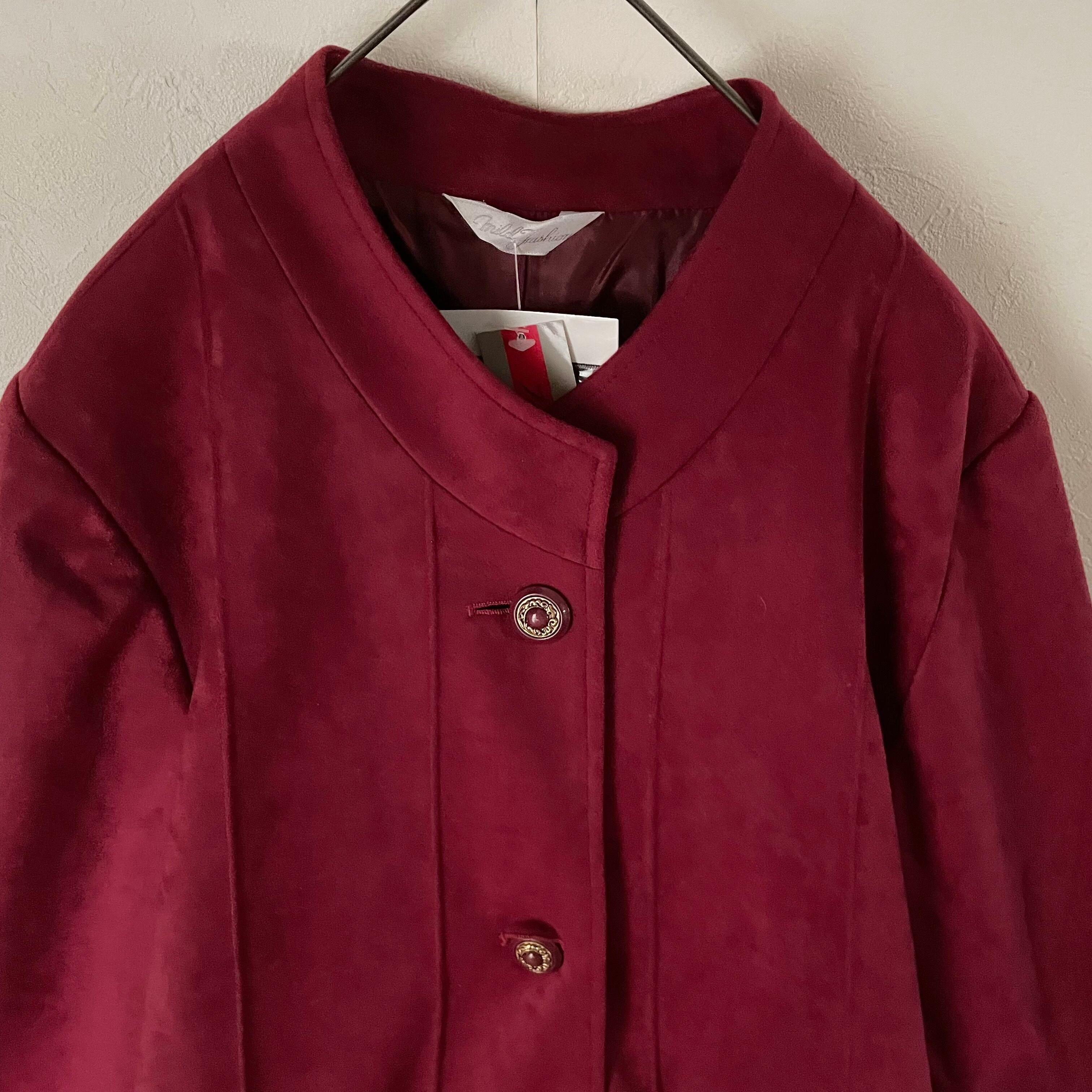 【デッドストック】80s スエード ノーカラー コート 昭和レトロヴィンテージ古着