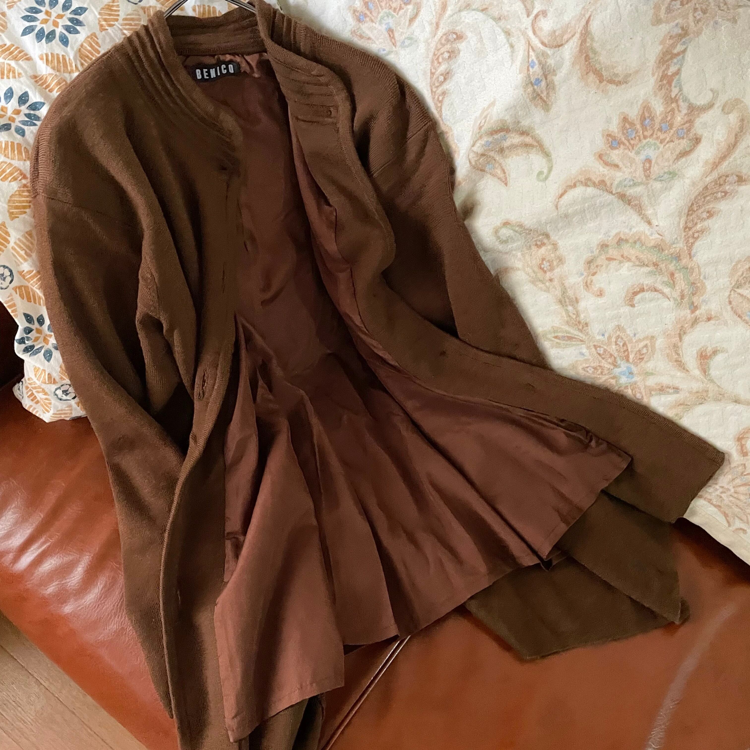 80-90s ブラウン ニットコート 昭和レトロヴィンテージ古着