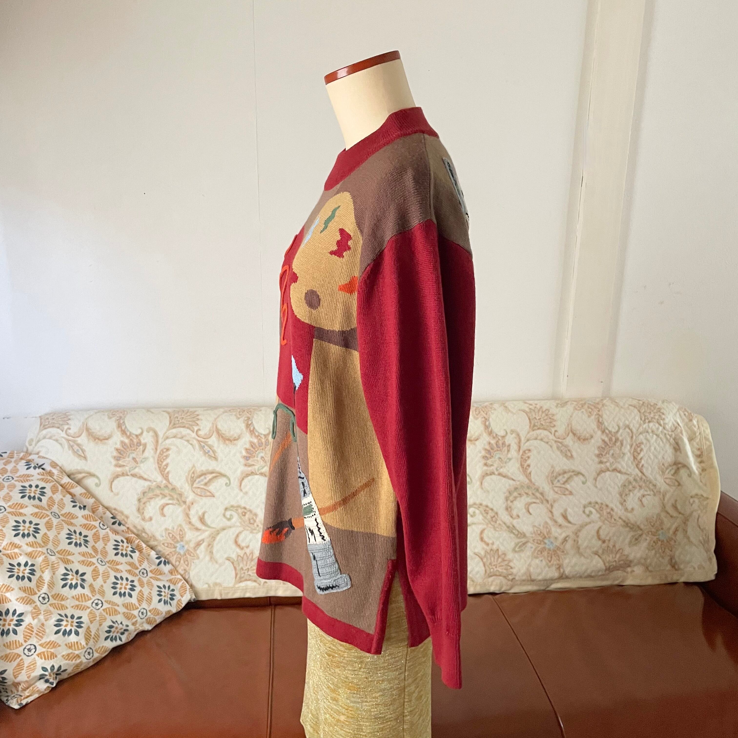 80s 絵の具モチーフ ウール 模様編みニット 昭和レトロヴィンテージ古着