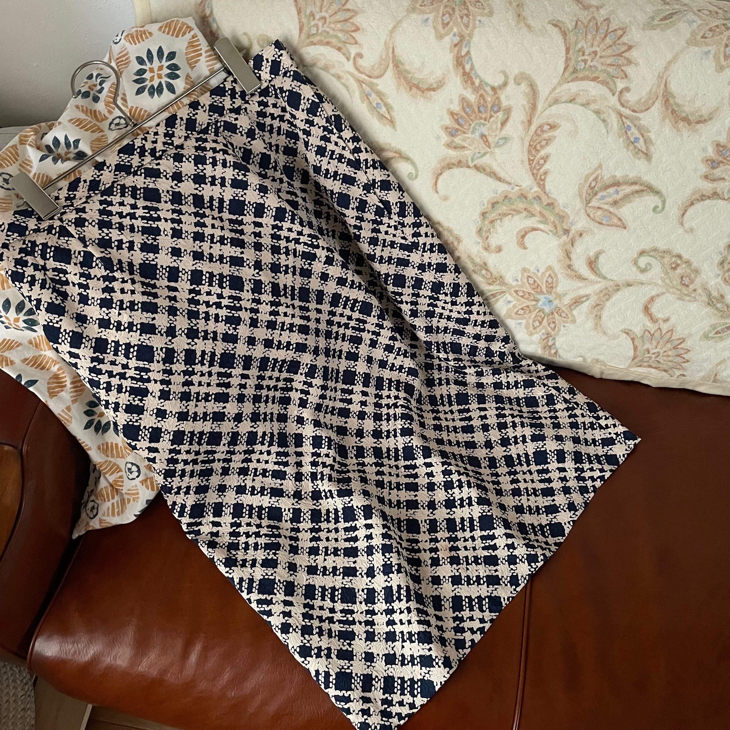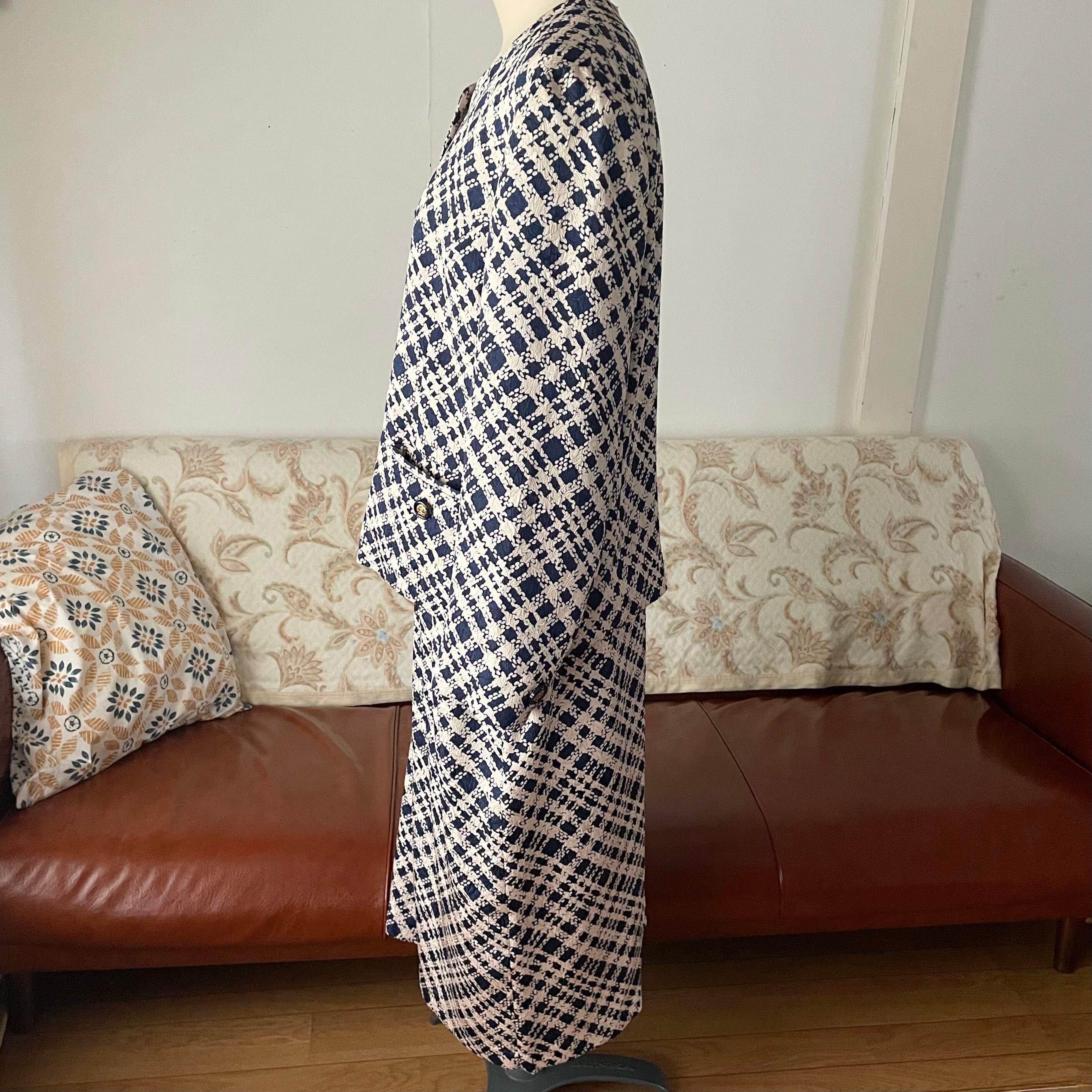 70s-80s 格子 ブルー セットアップ 昭和レトロヴィンテージ古着