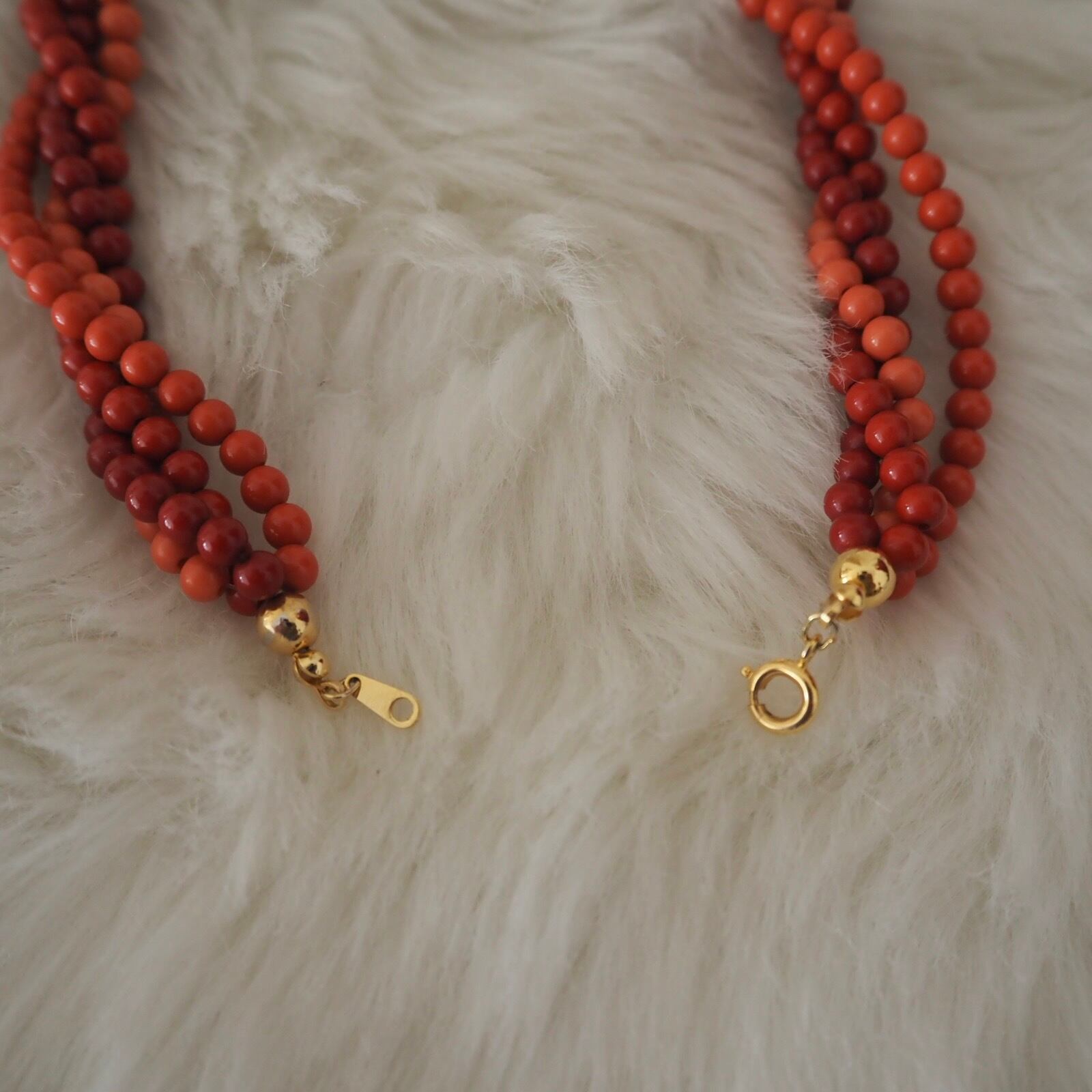 オレンジ ビーズチョーカー 4連ネックレス 昭和レトロヴィンテージ アクセサリー