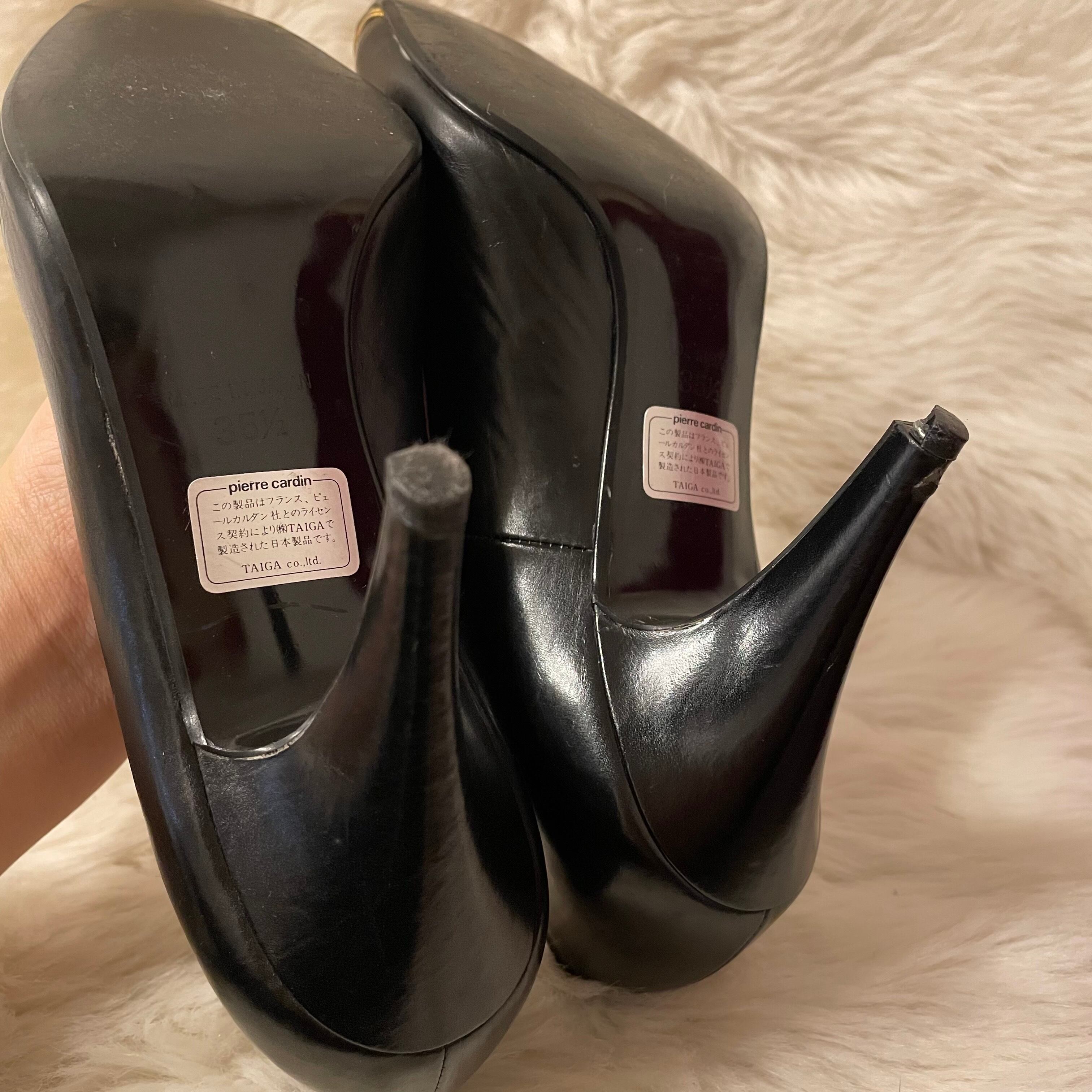 70-80s Pierre Cardin ブラックレザー パンプス ハイヒール レトロヴィンテージシューズ