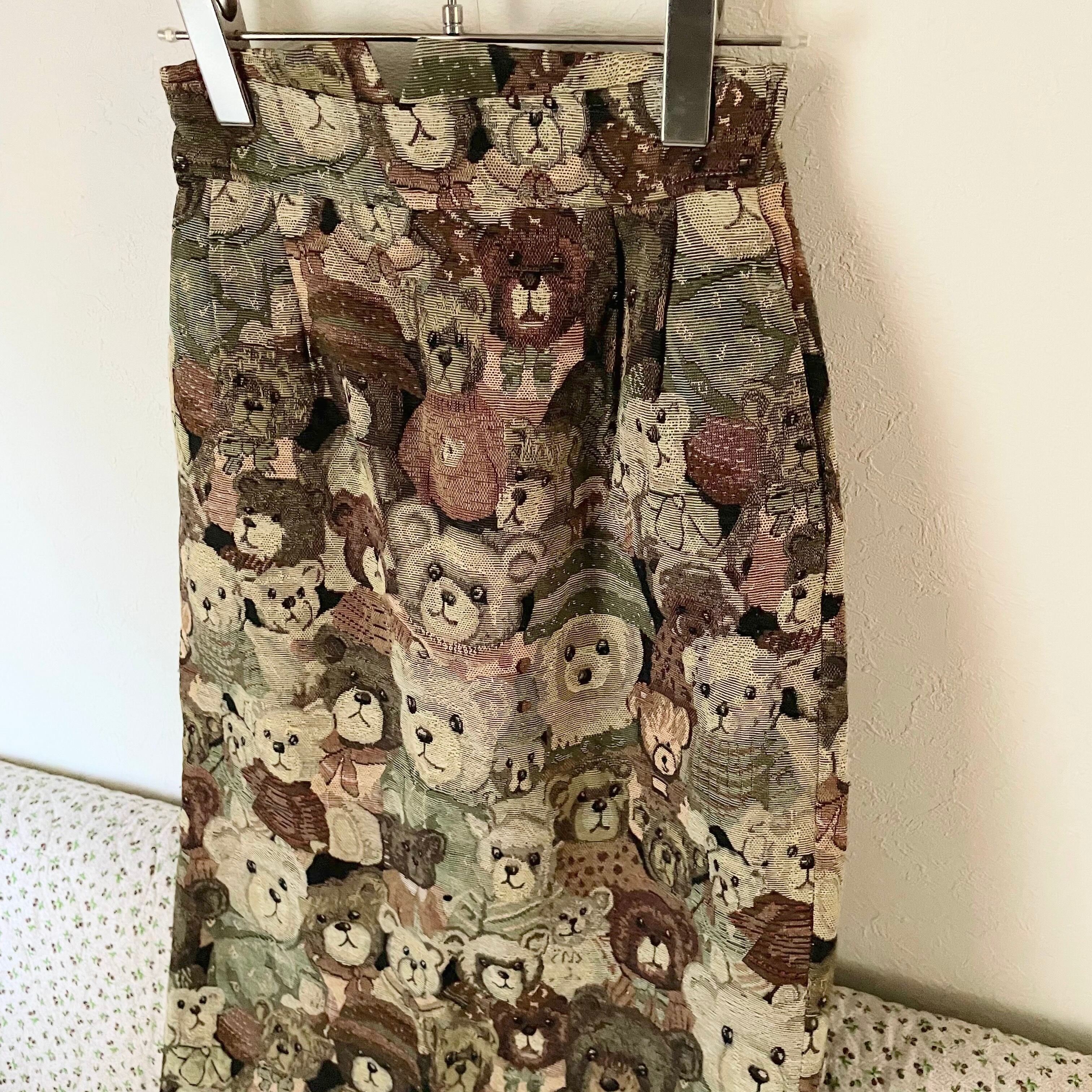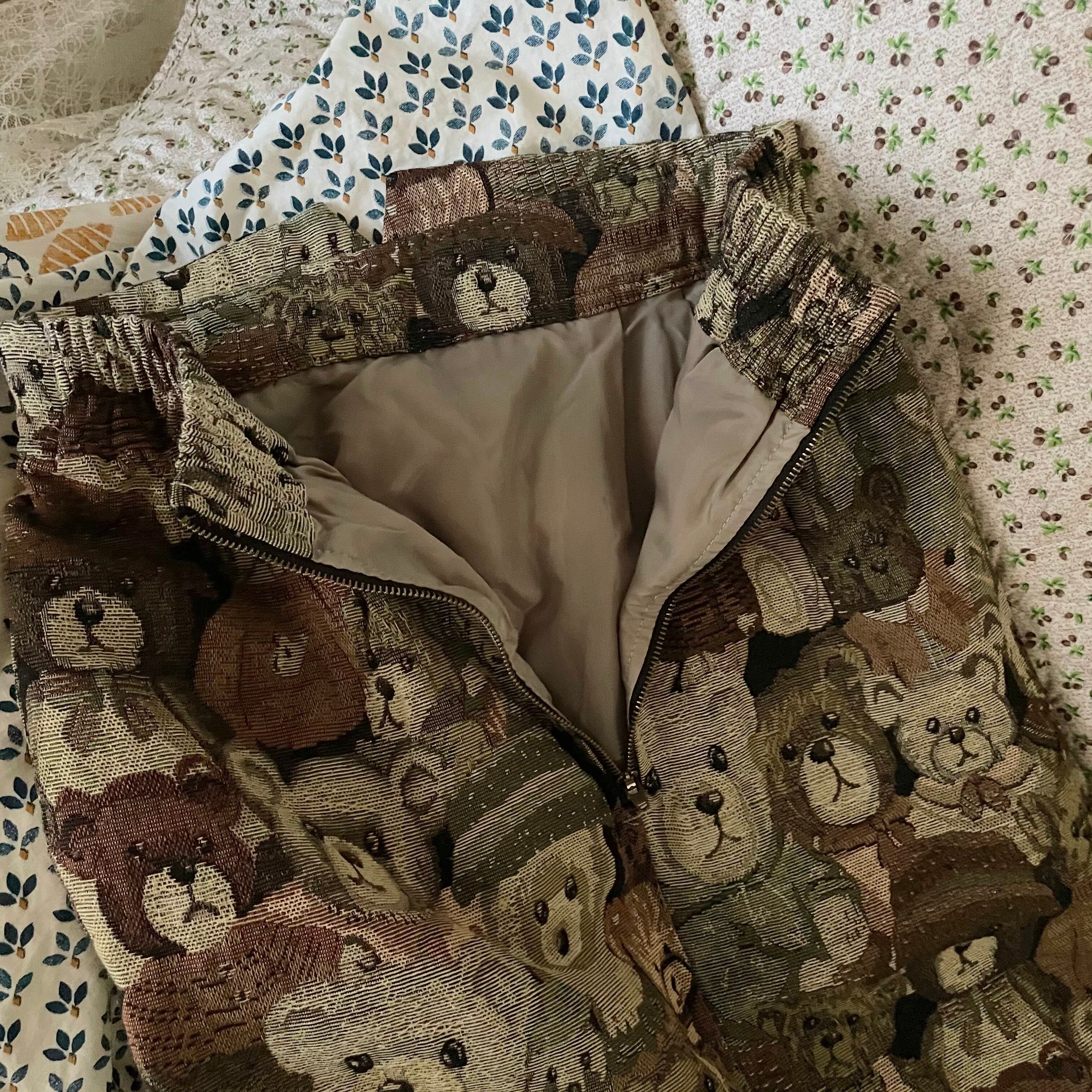 Used ゴブラン織り クマ柄 ロングスカート レトロヴィンテージ古着