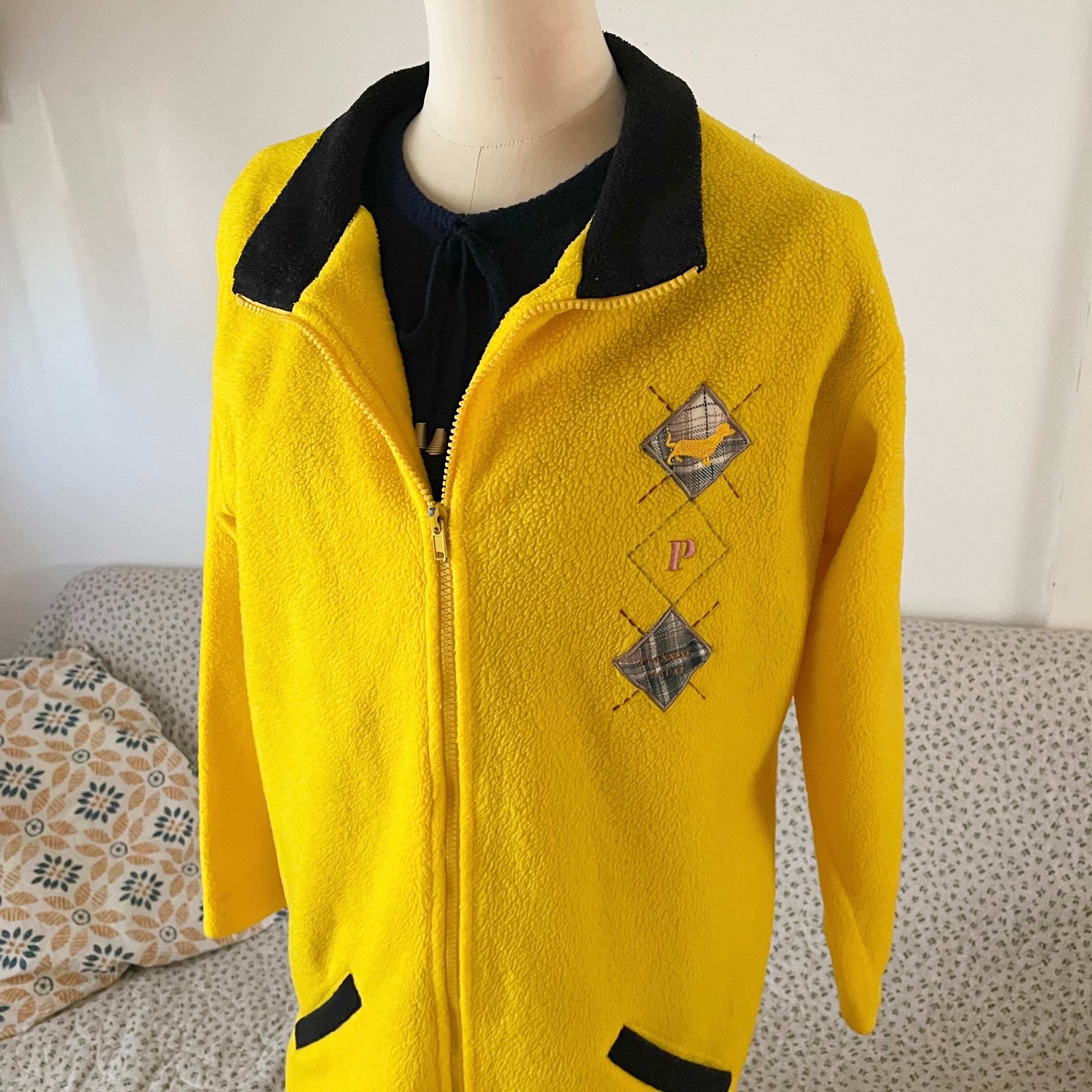 80-90s フリース ジャンパー アーガイル犬刺繍 昭和レトロヴィンテージ古着
