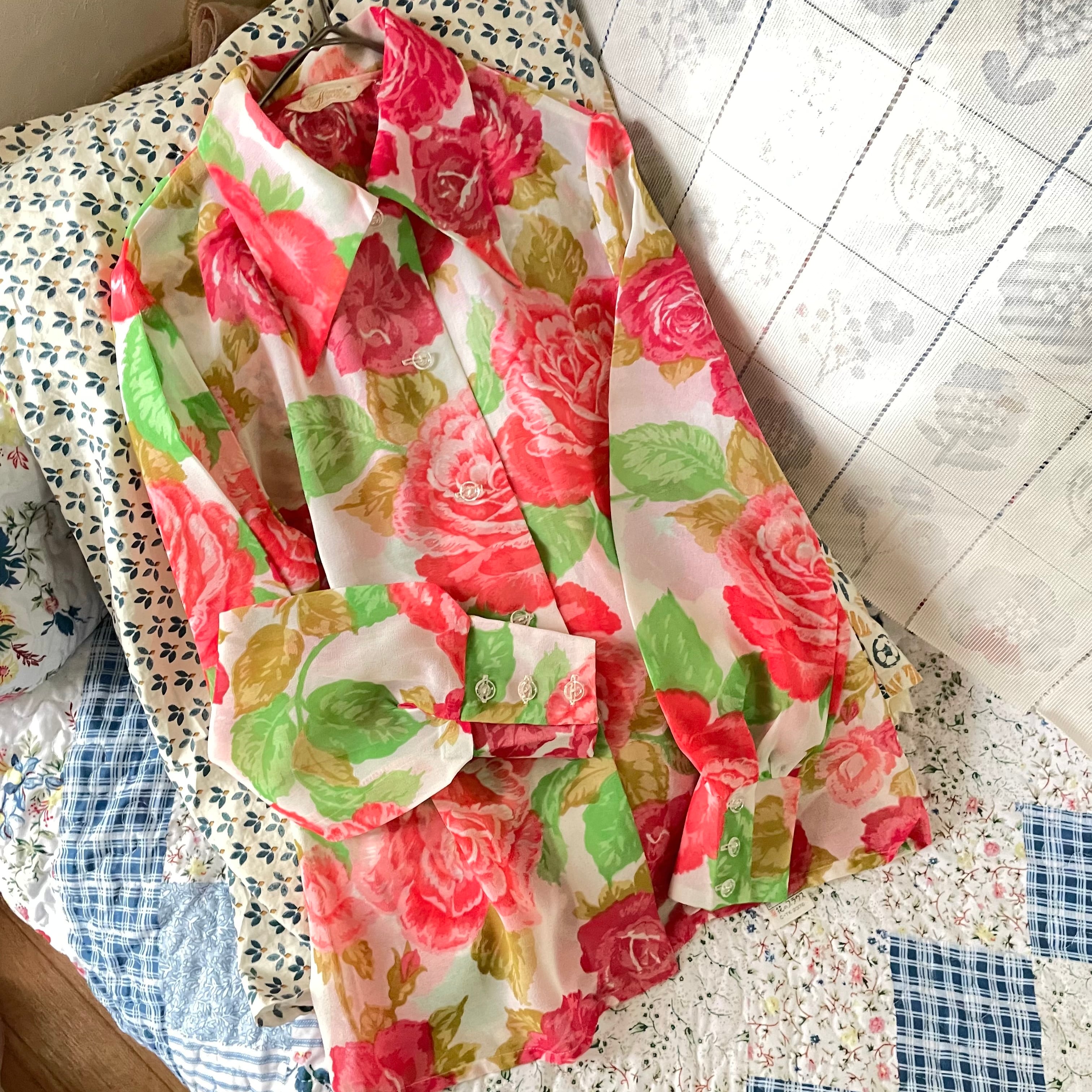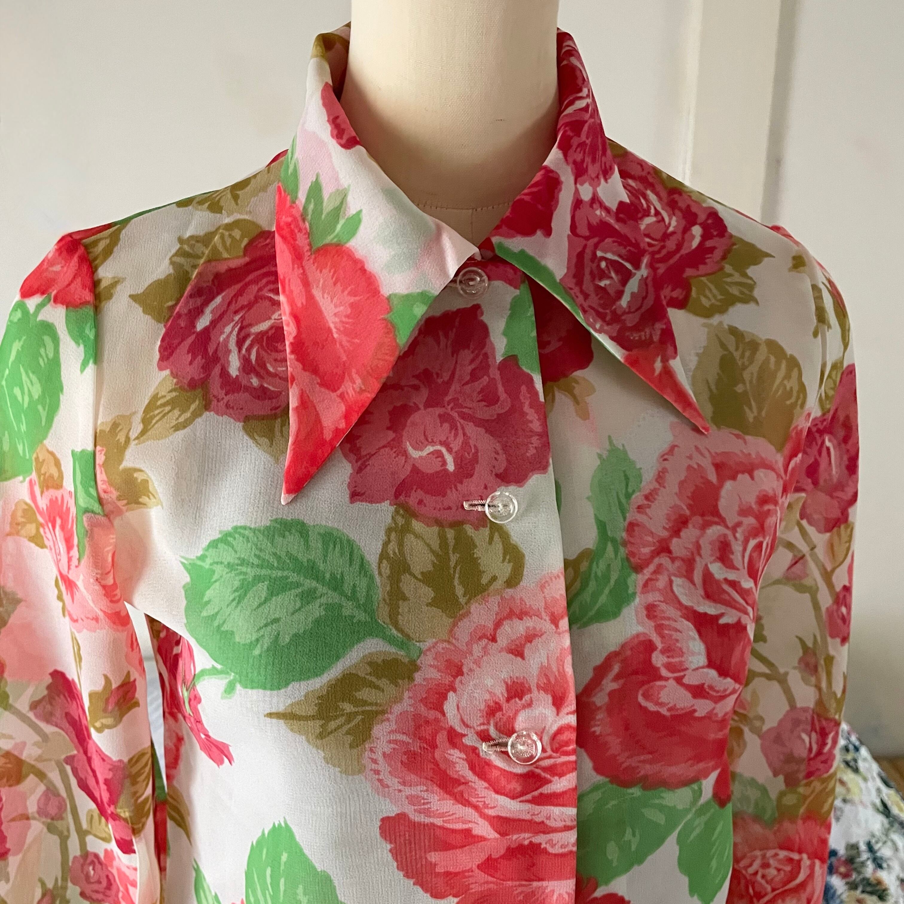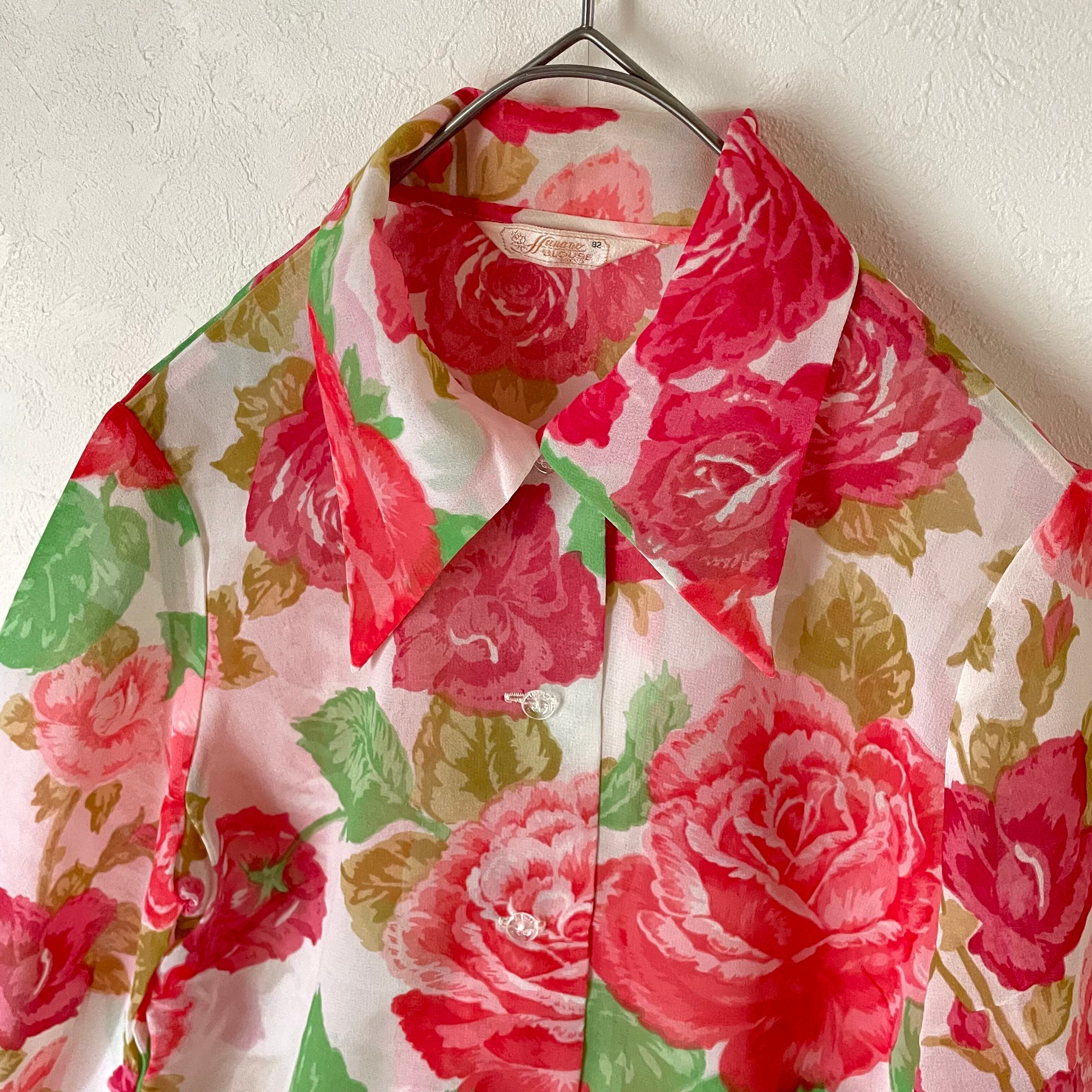 80s バラ柄 シースルー ブラウス 昭和レトロヴィンテージ古着