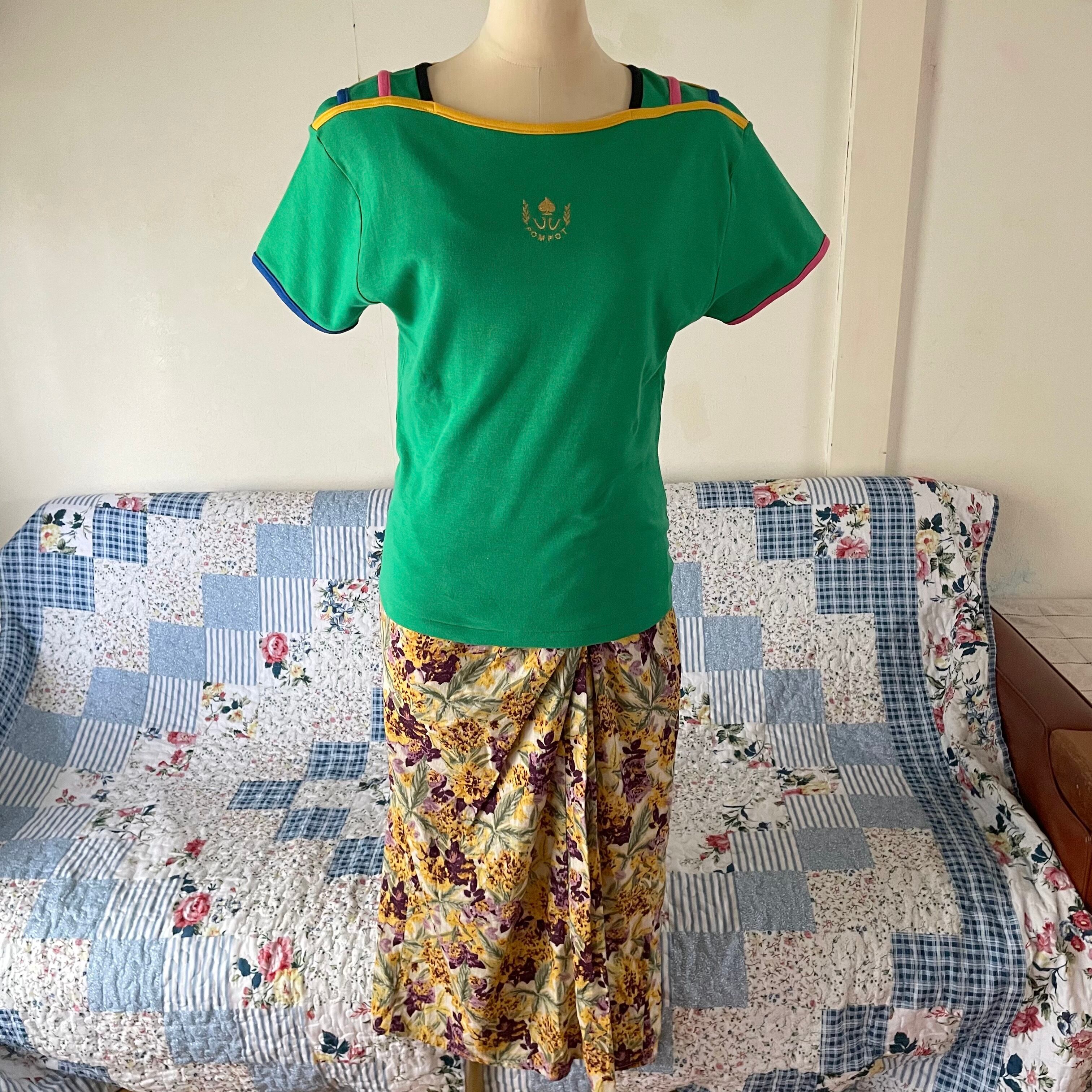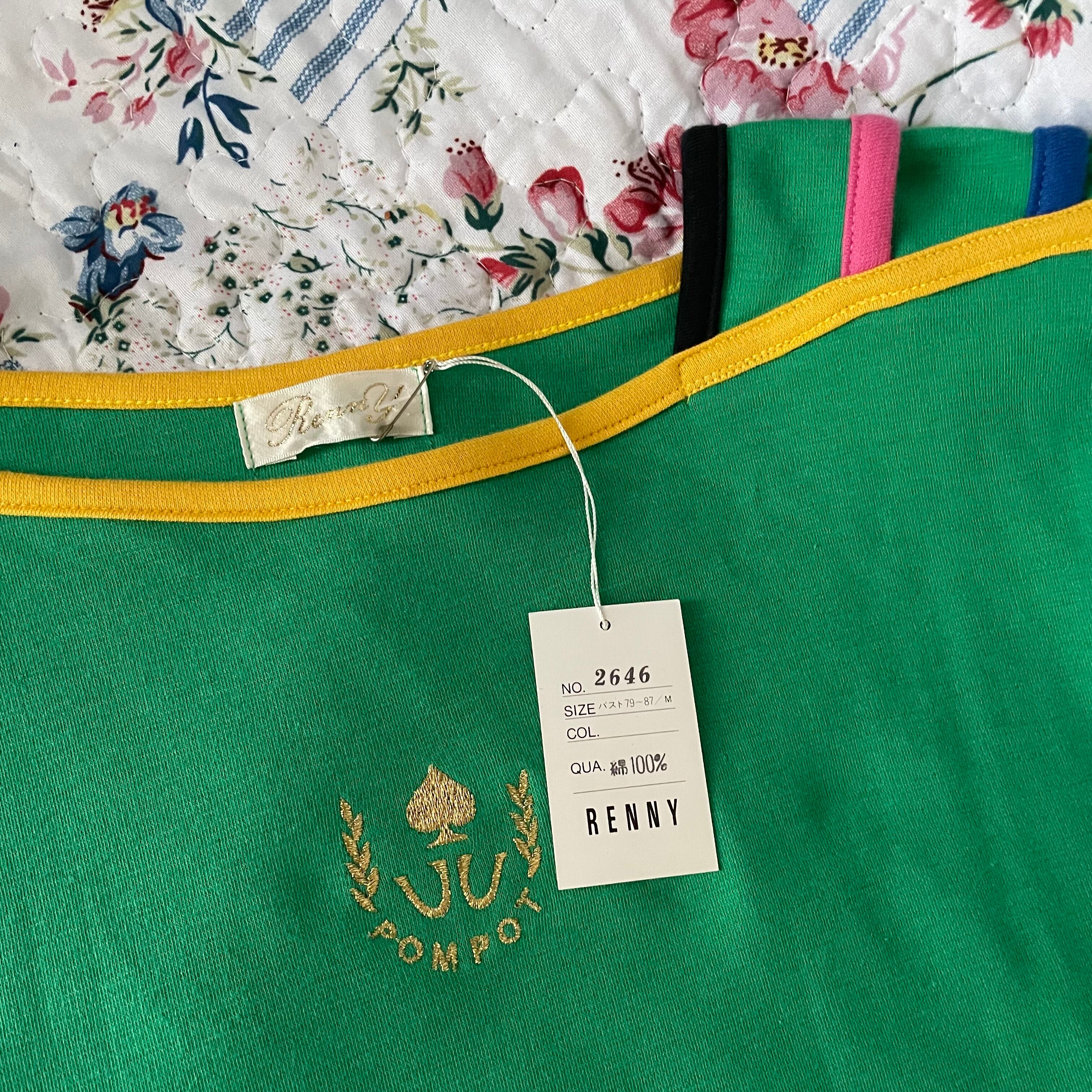 【デッドストック】80s エンブレム×肩ライン グリーンTシャツ 昭和レトロヴィンテージ古着