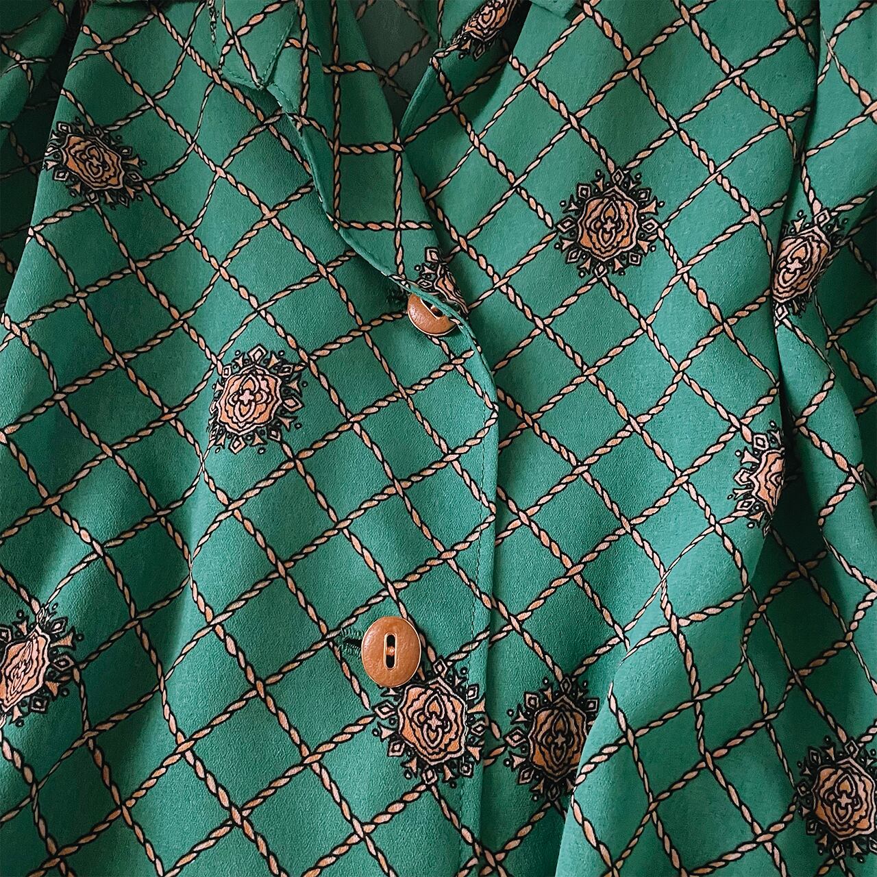80-90s グリーン半袖シャツ 昭和レトロヴィンテージ古着