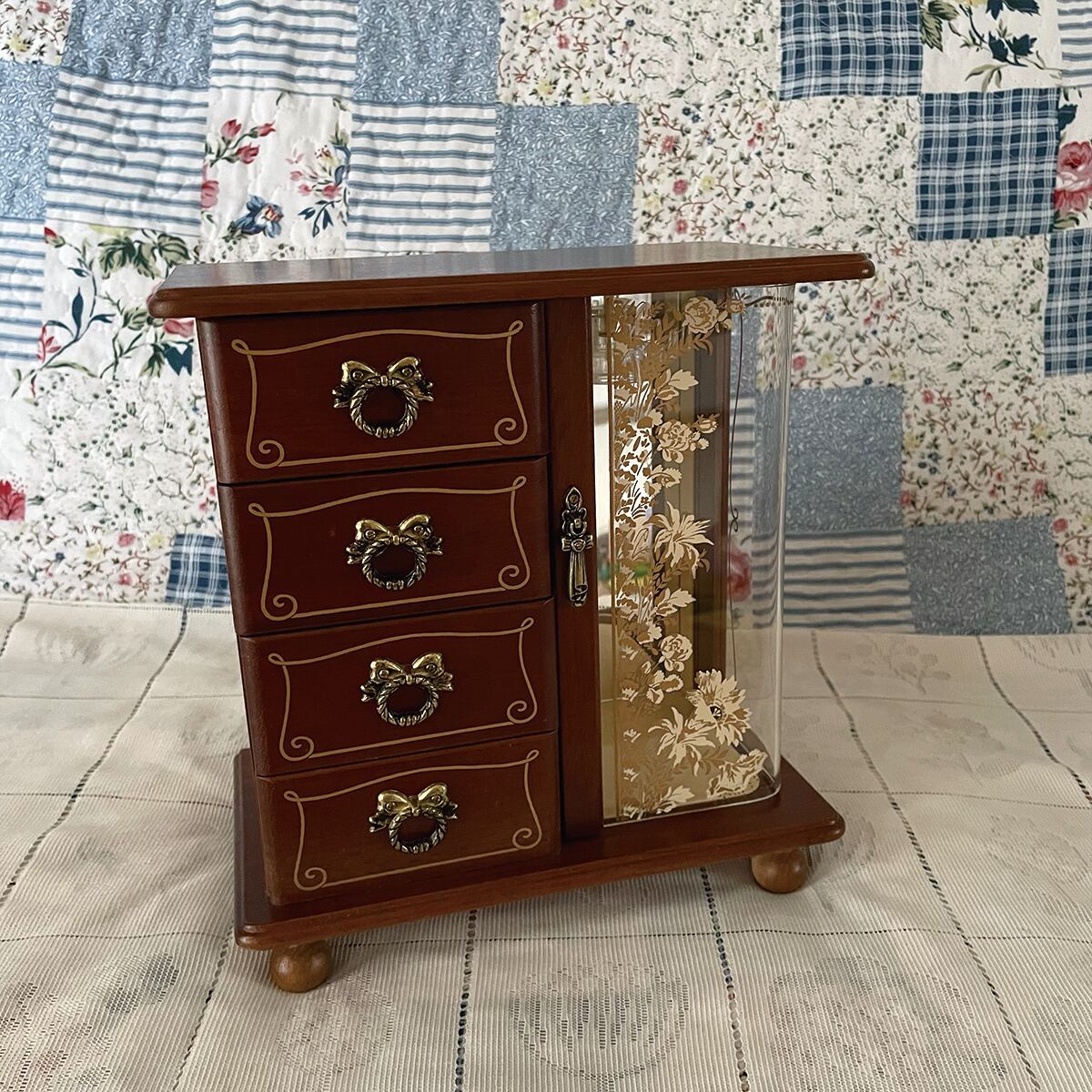 90s 木製アクセサリーボックス オルゴール付き 昭和レトロヴィンテージ雑貨【50%クーポン適用外】