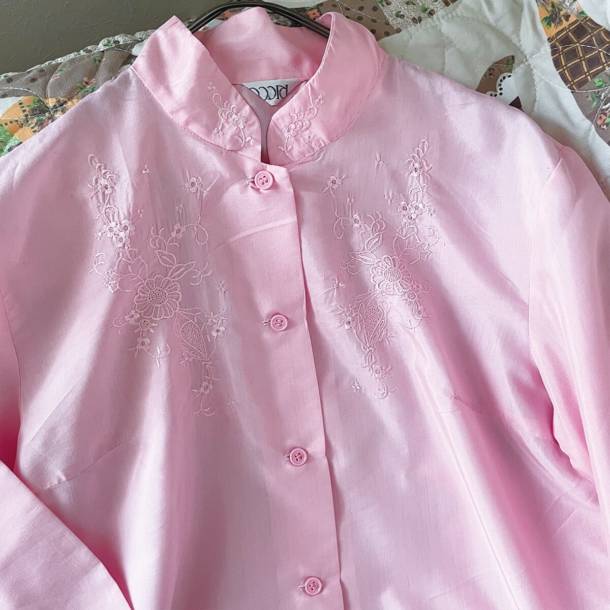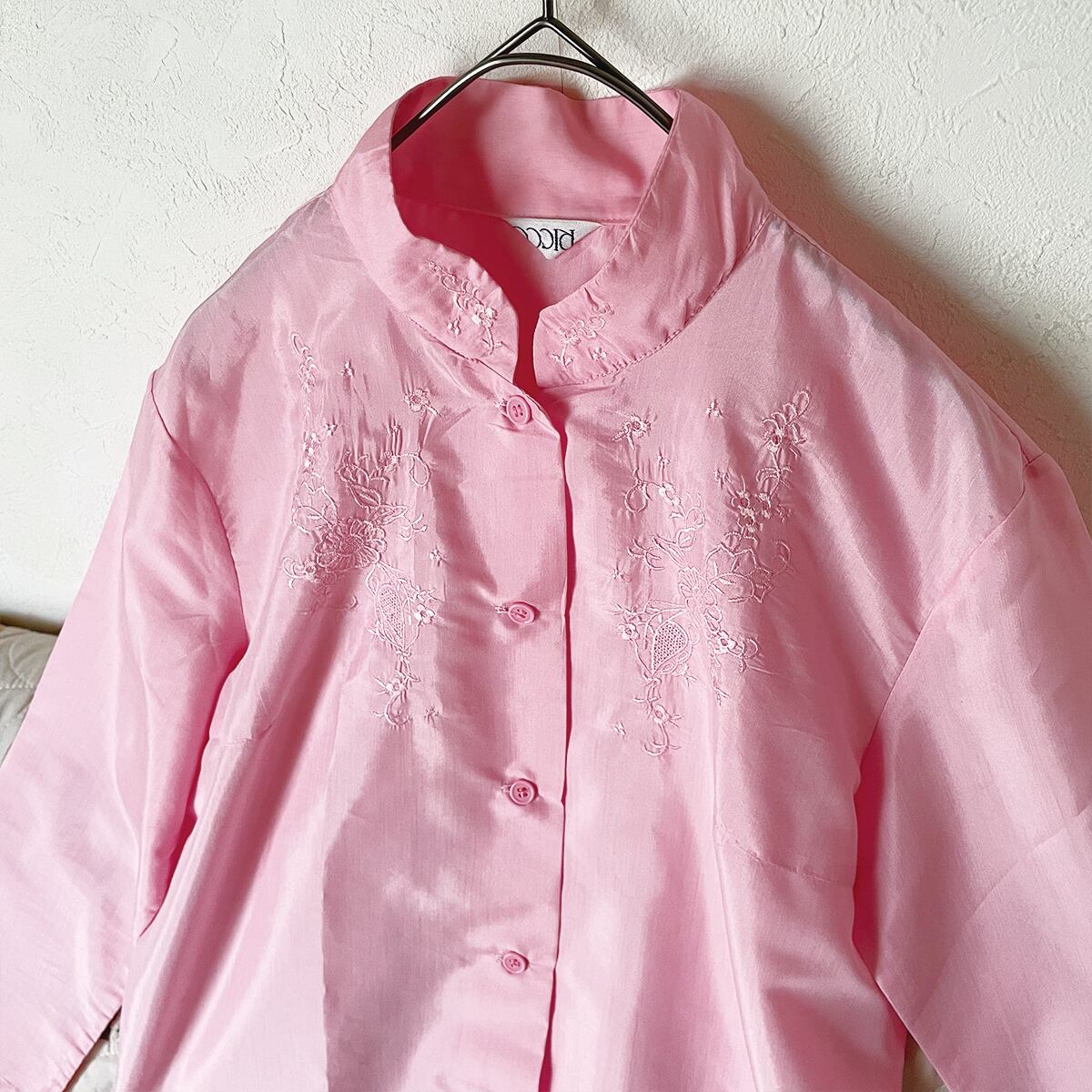 70s チャイナブラウス ピンク 昭和レトロヴィンテージ古着