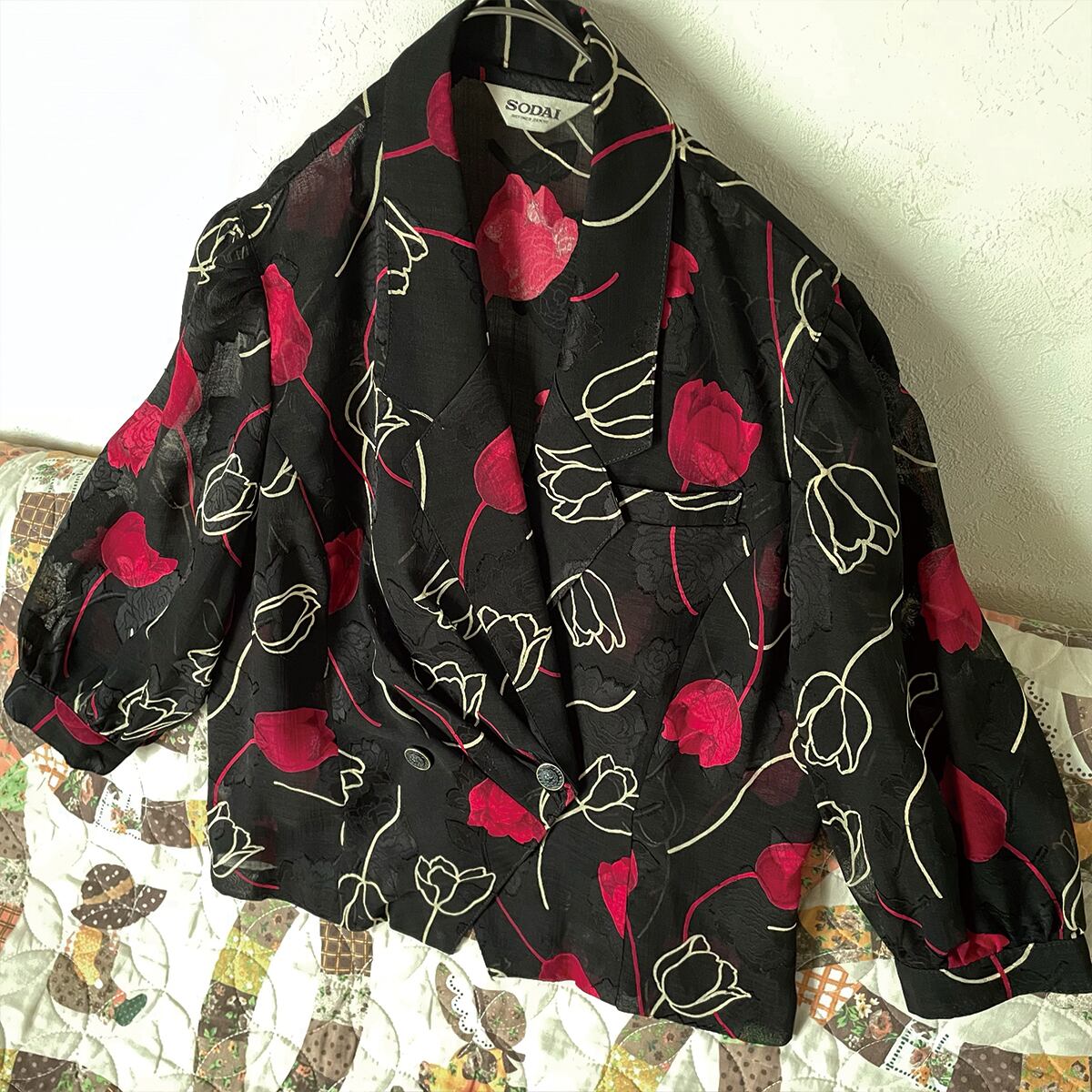 80s シースルージャケット チューリップ バラ柄 昭和レトロヴィンテージ古着