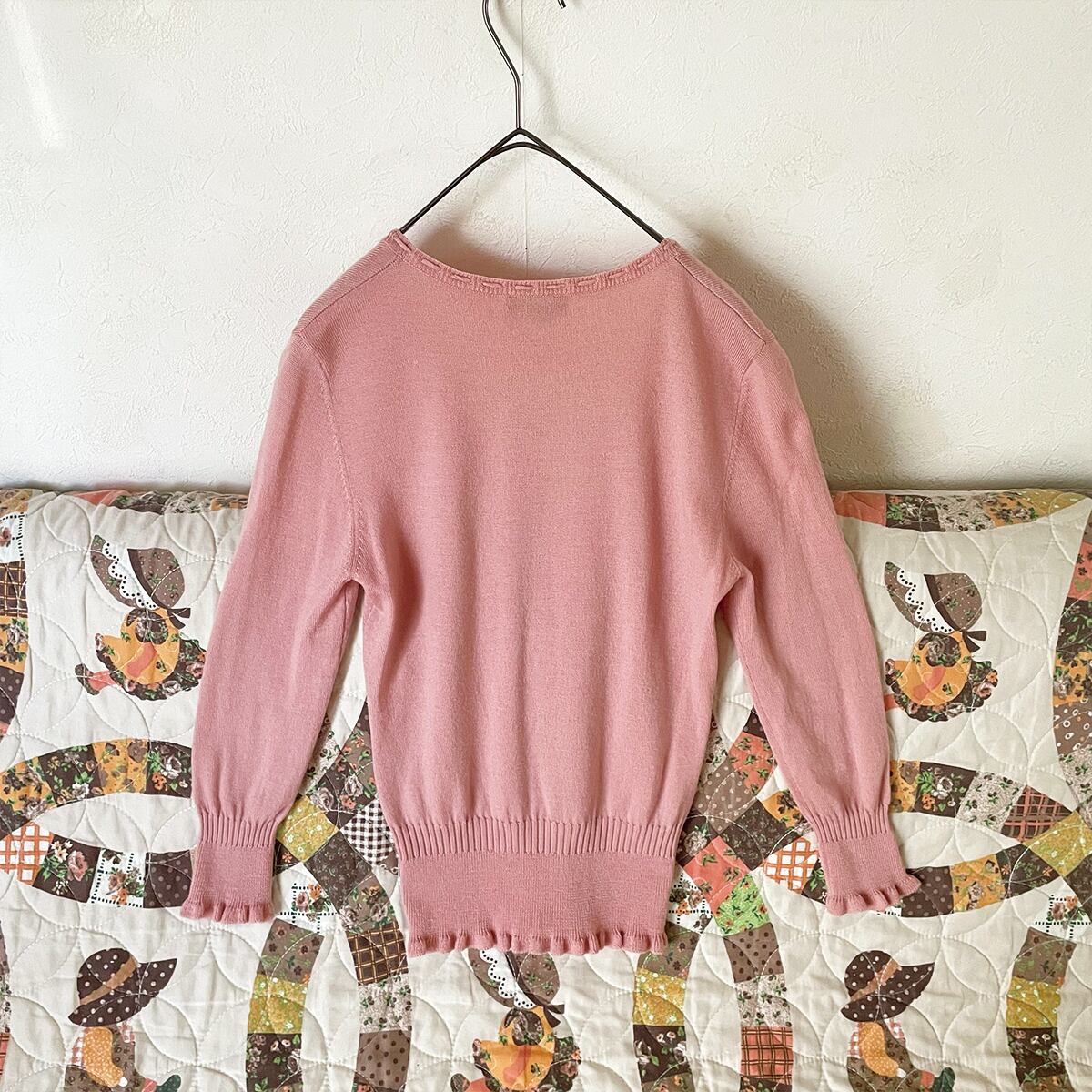 90s ニットトップス ベビーピンク ウール100% 昭和レトロヴィンテージ 古着