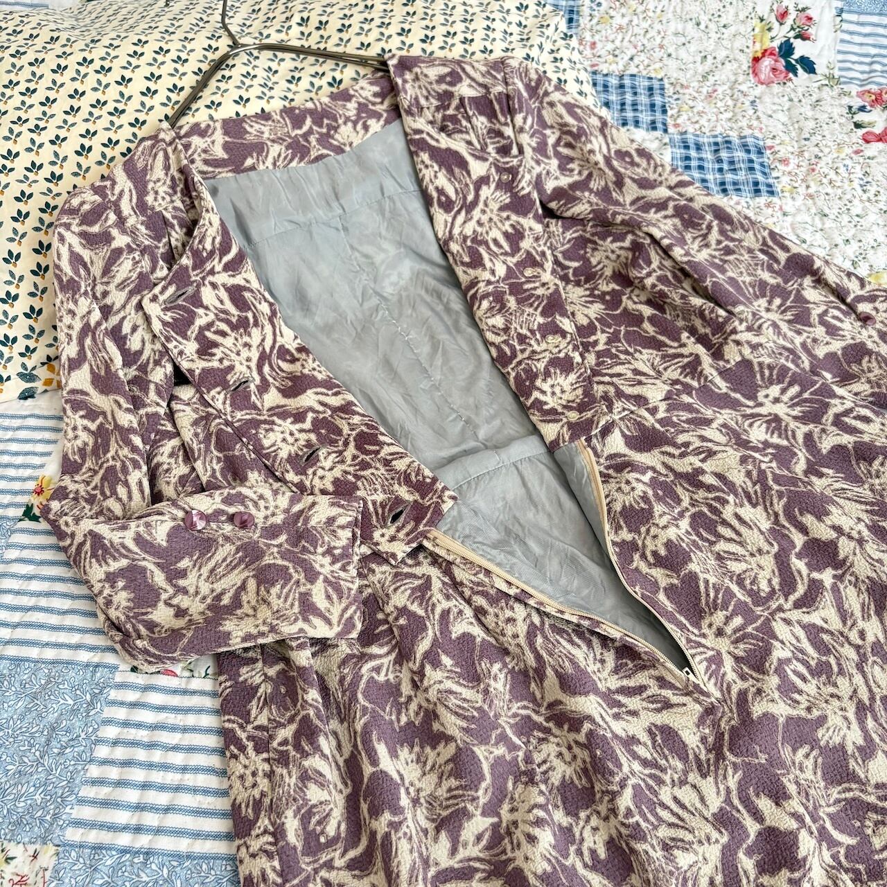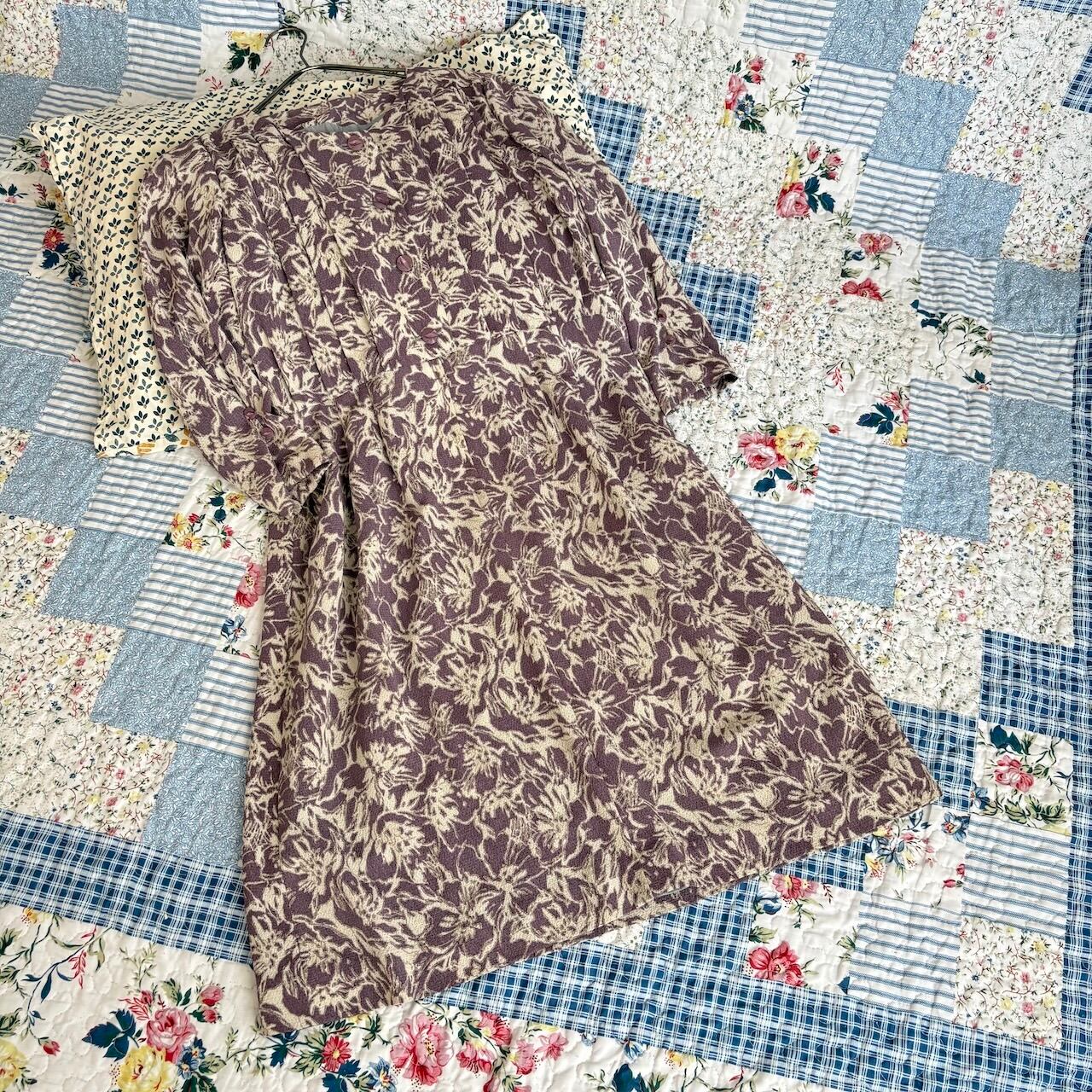 70s パープル 花柄 ワンピース 昭和レトロヴィンテージ古着