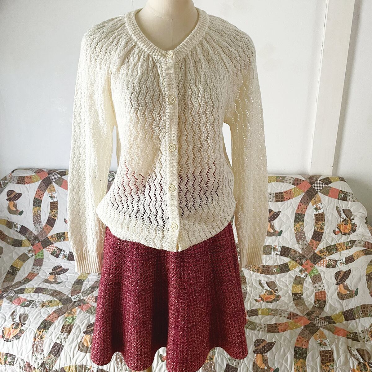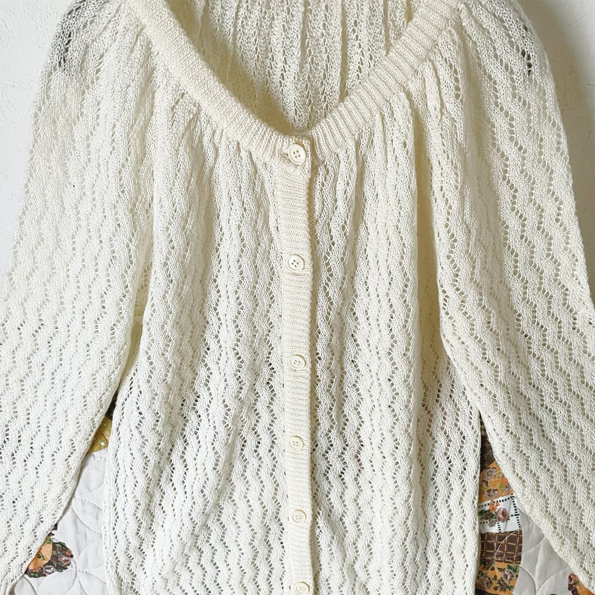 70s 透かし編 ニットカーディガン 白 昭和レトロヴィンテージ古着