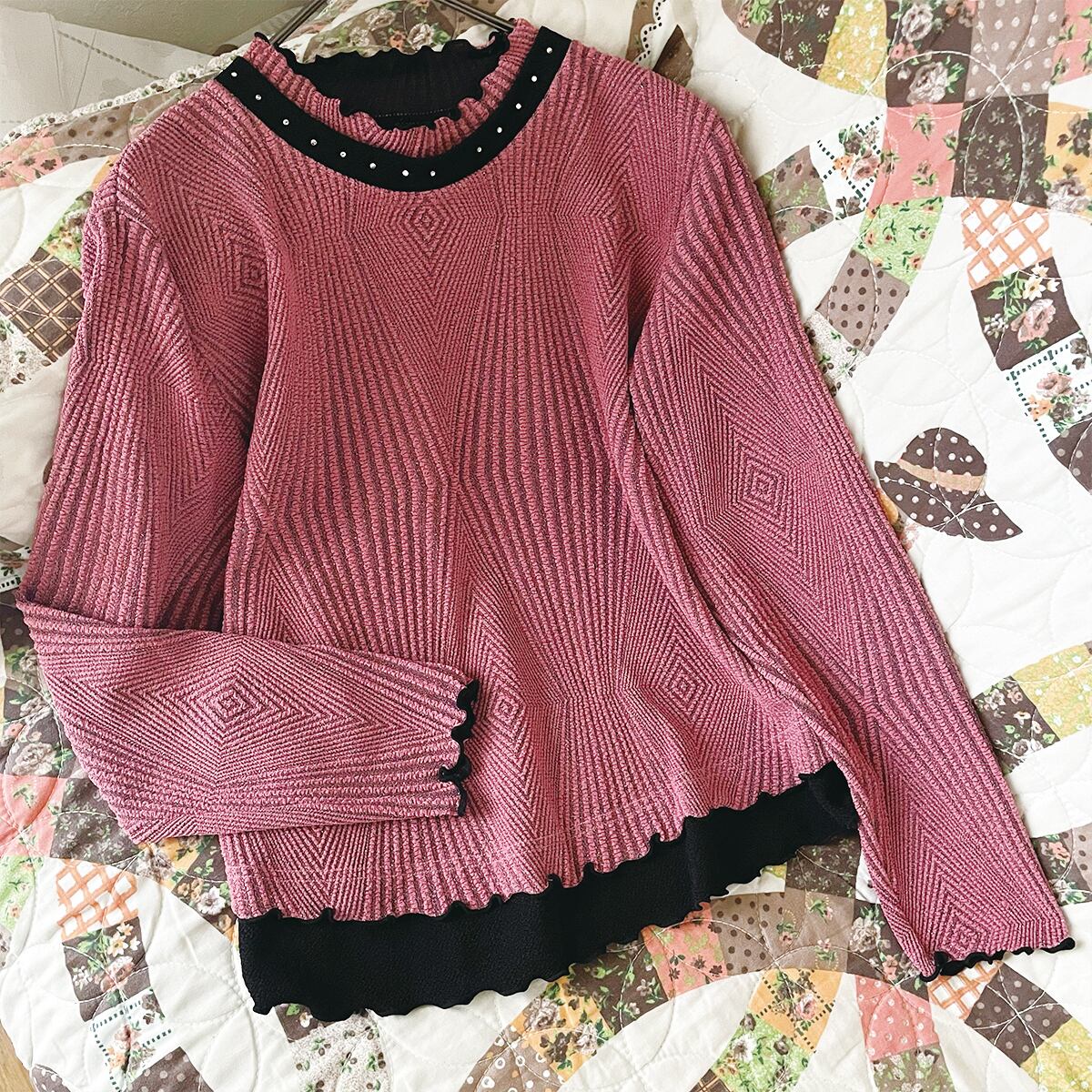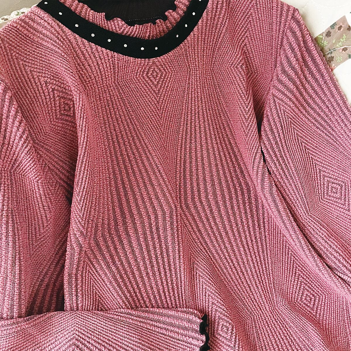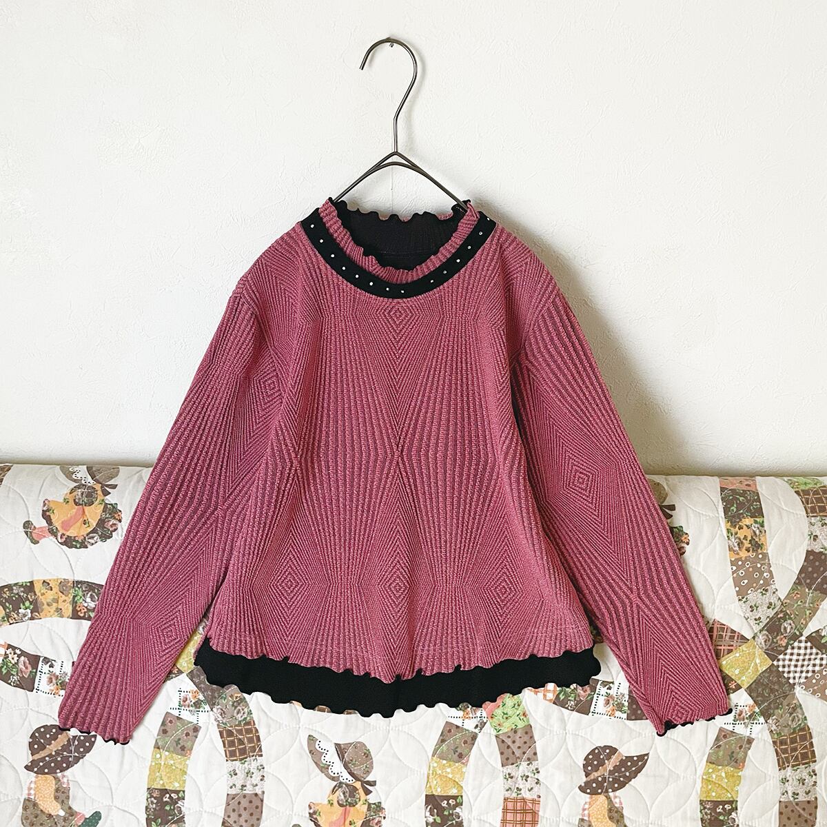 ピンクラメリブニット