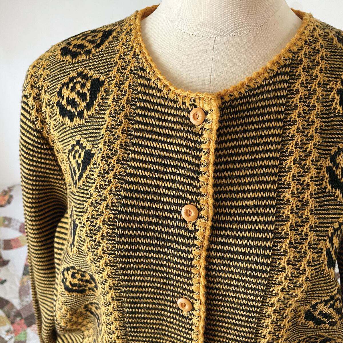 70s ウール100% 模様編み カーディガン 昭和レトロ ヴィンテージ古着