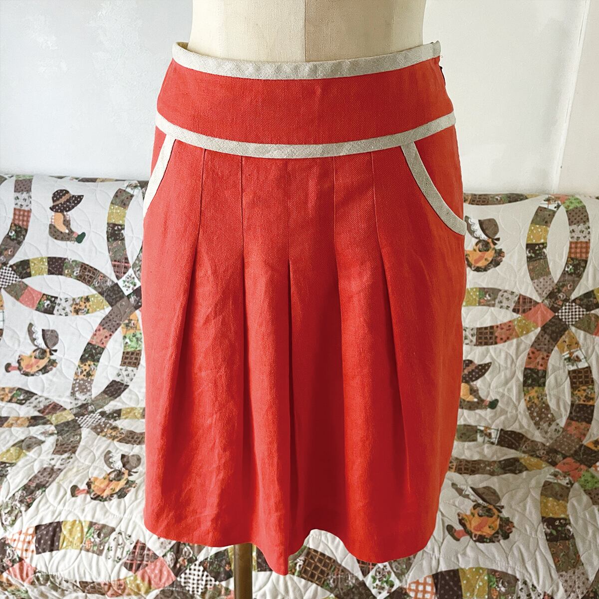 80s オレンジ プリーツスカート 昭和レトロヴィンテージ古着