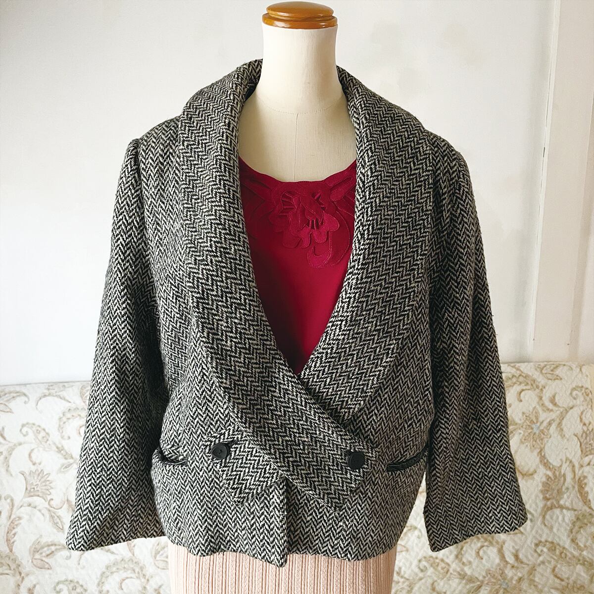 70s ウール ヘリンボーン ショートジャケット 昭和レトロヴィンテージ古着