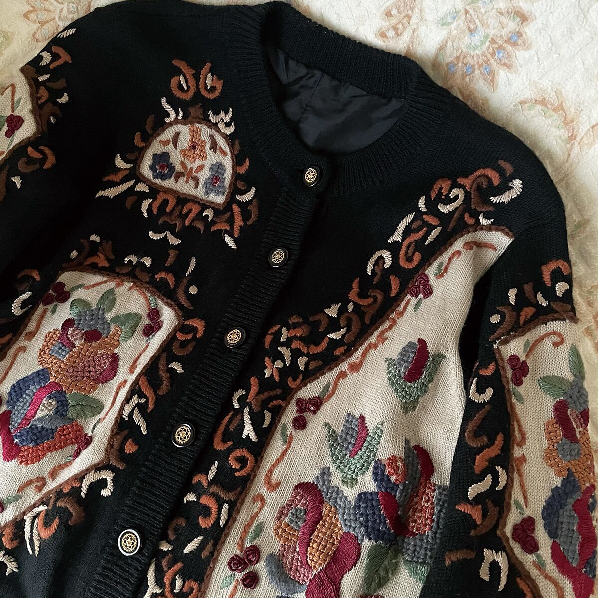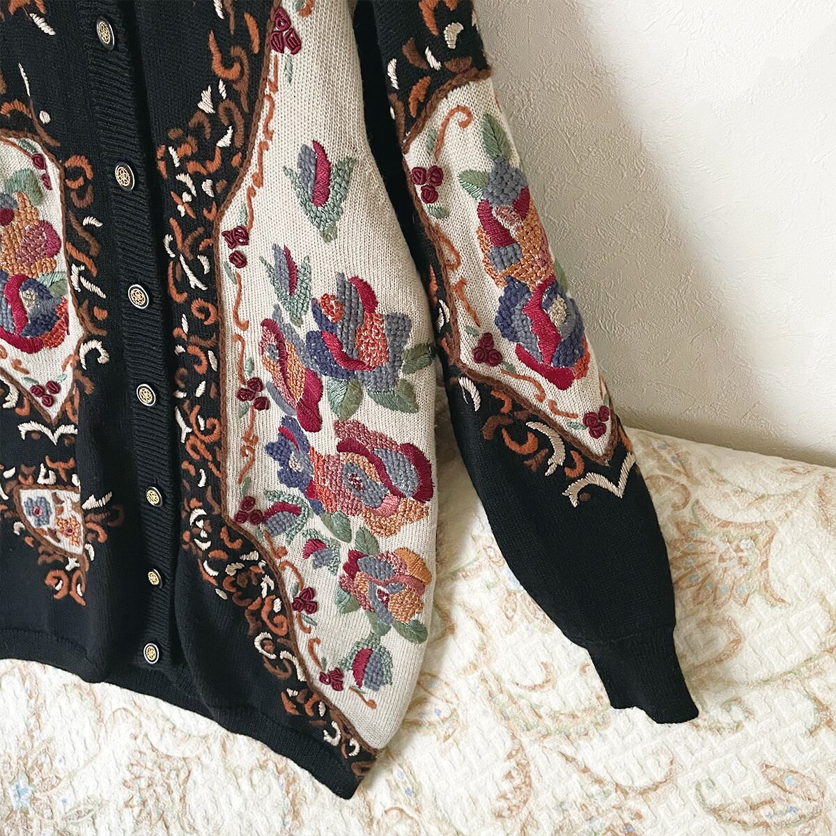 80s 刺繍ニットカーディガン 昭和レトロ ヴィンテージ古着