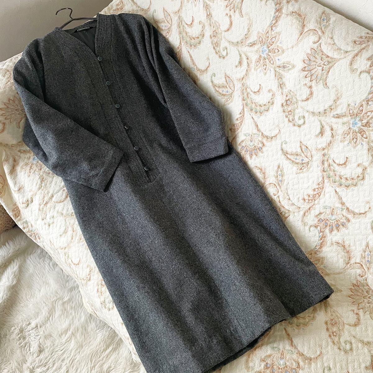 80s ウール グレー ワンピース 昭和レトロヴィンテージ古着