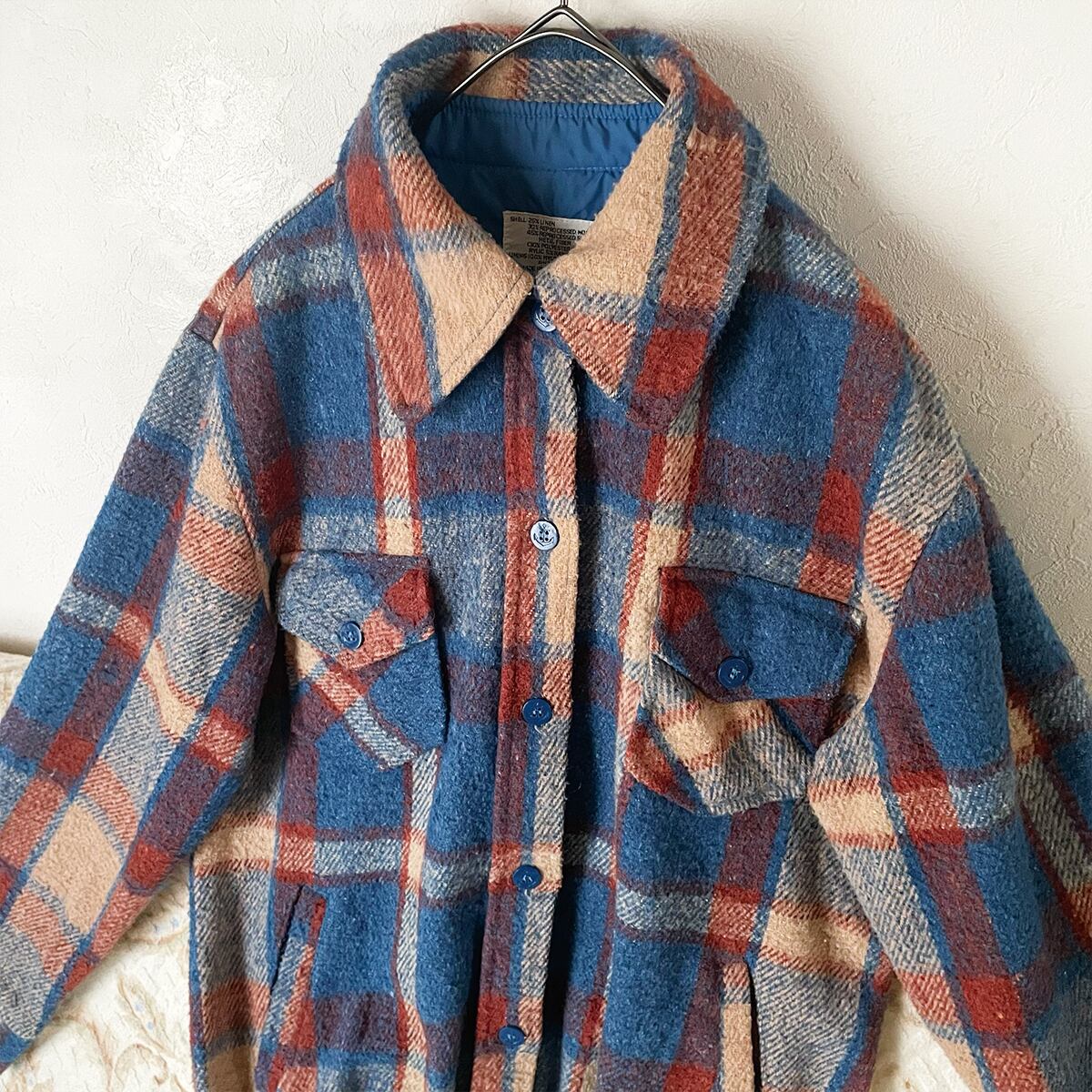 90s チェック柄 リネンウール ブルゾン 昭和レトロヴィンテージ古着