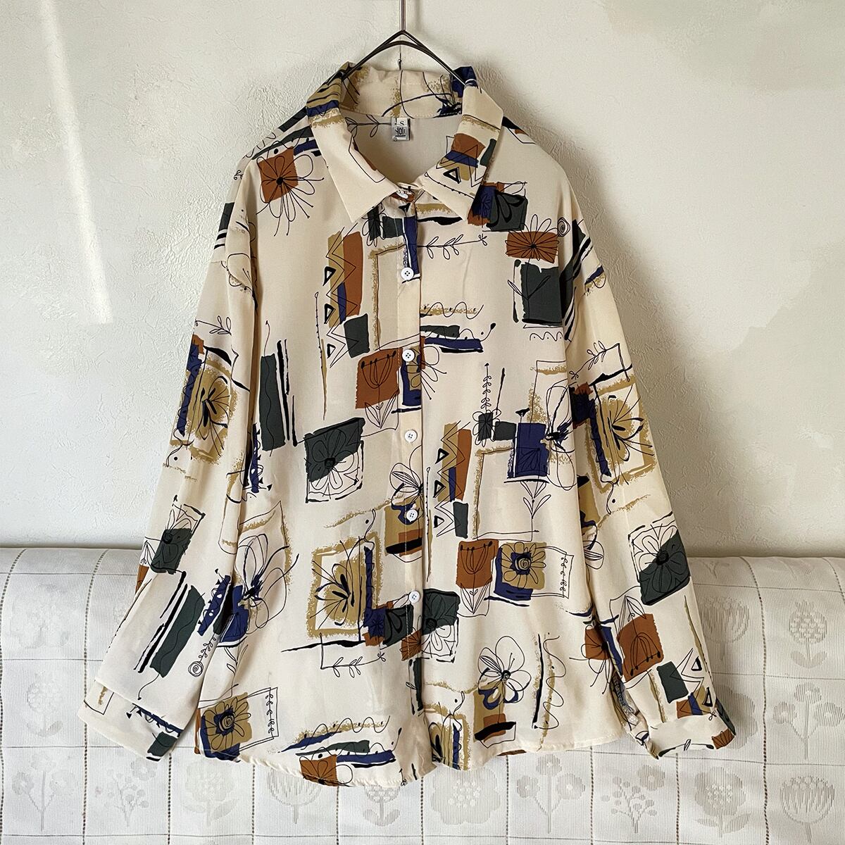 90s 長袖シャツ レトロ柄 レトロヴィンテージ古着