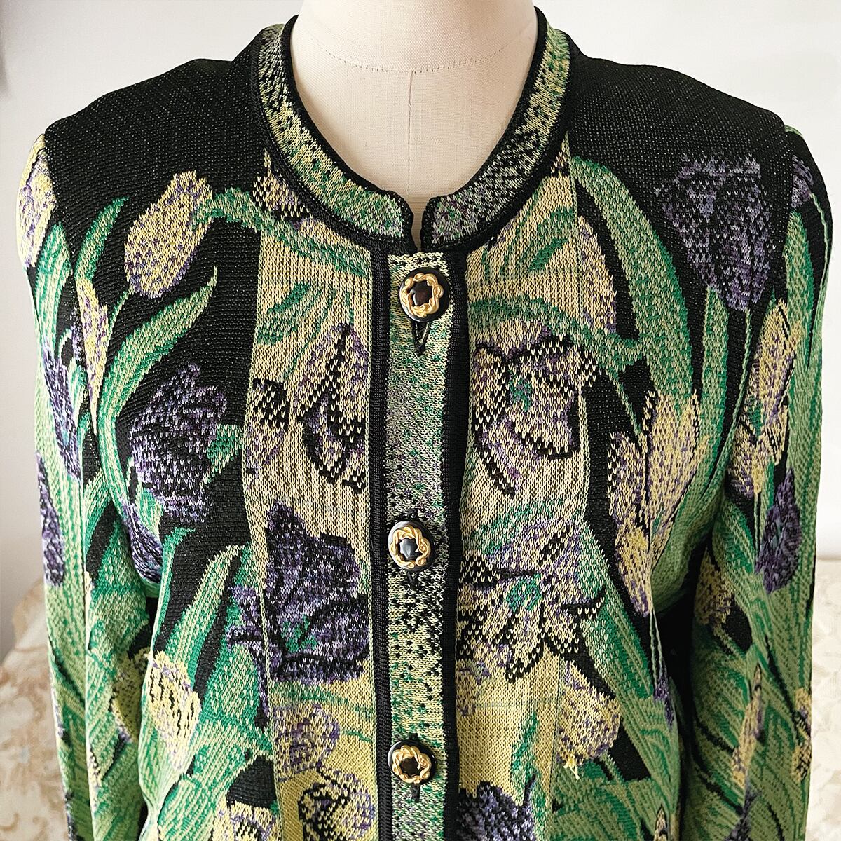 80s ジャカード カーディガン チューリップ 昭和レトロヴィンテージ古着