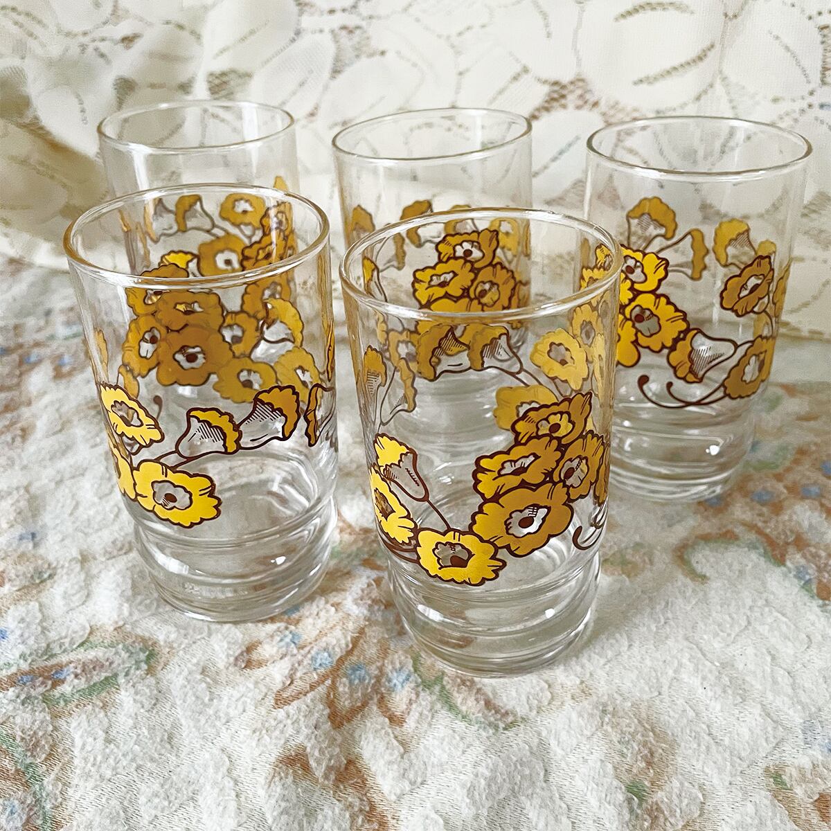 レトロなお花柄の小ぶりでかわいいグラスです