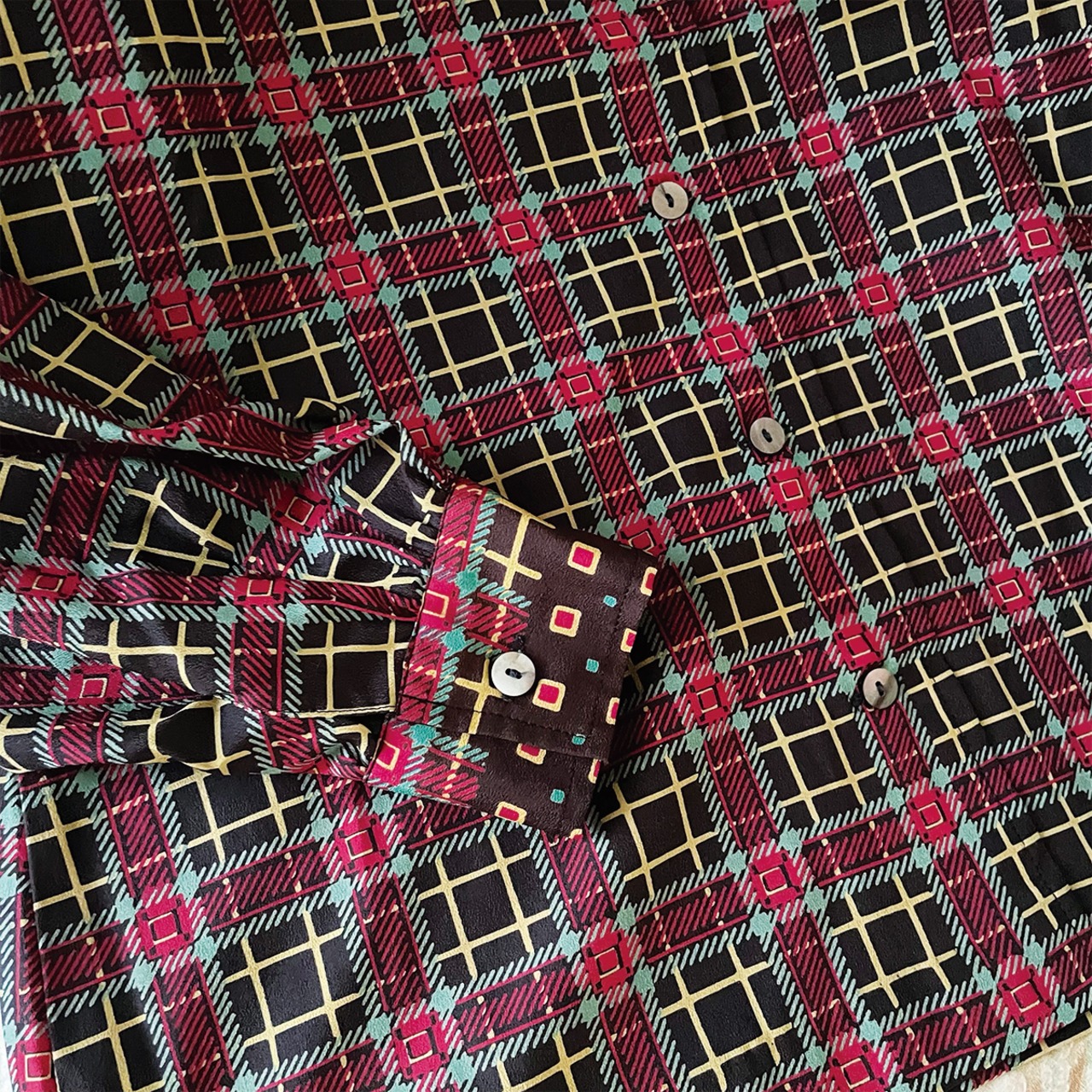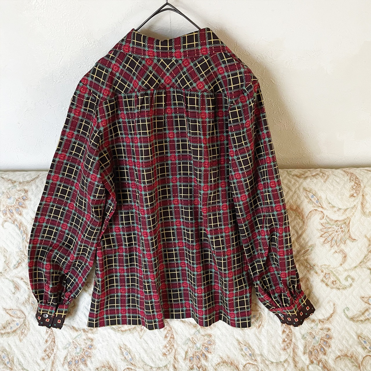 70s チェック柄 開襟シャツ 昭和レトロヴィンテージ古着