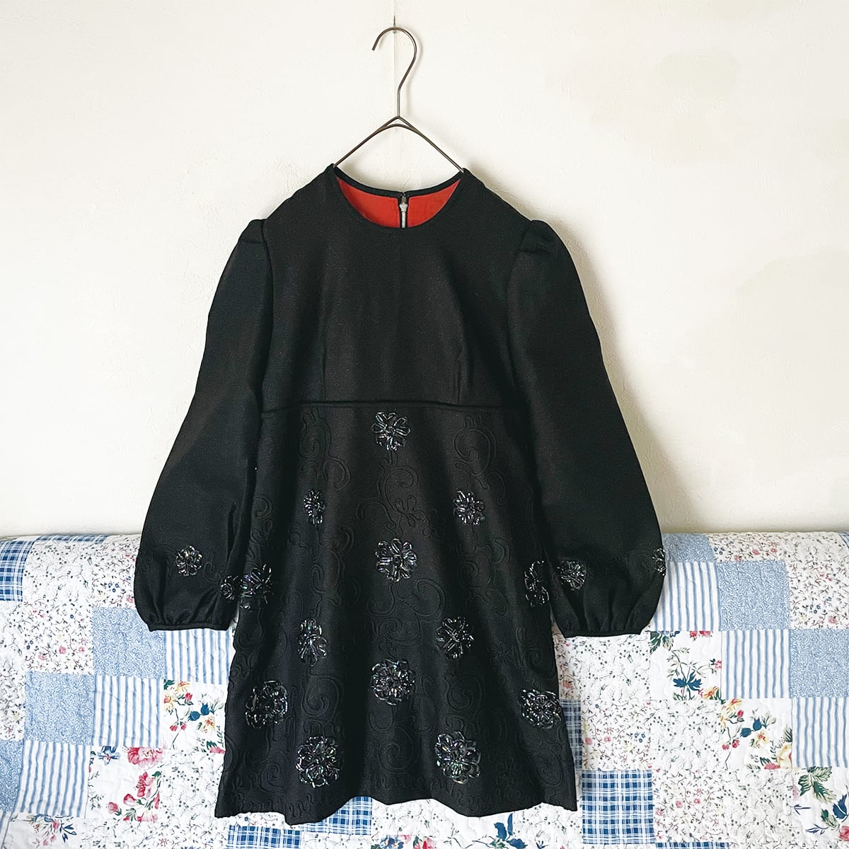 80s ブラック ラメ刺繍ドレス ワンピース レトロヴィンテージ古着