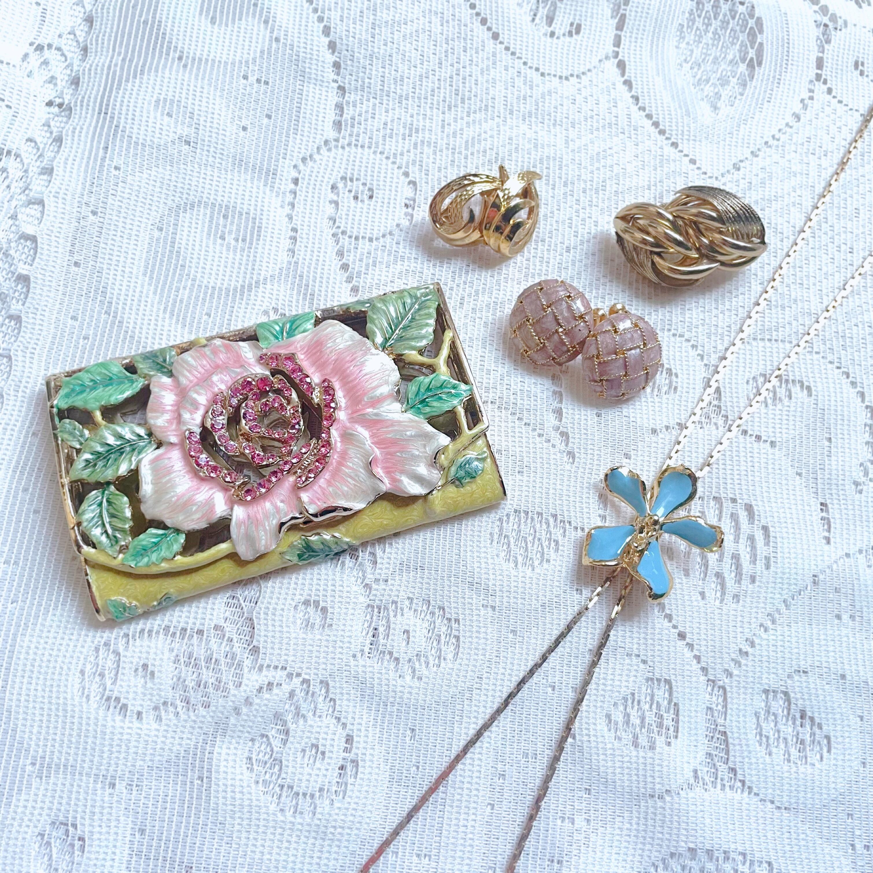 70-80s パープルピンク ラウンドイヤリング 昭和レトロヴィンテージ アクセサリー