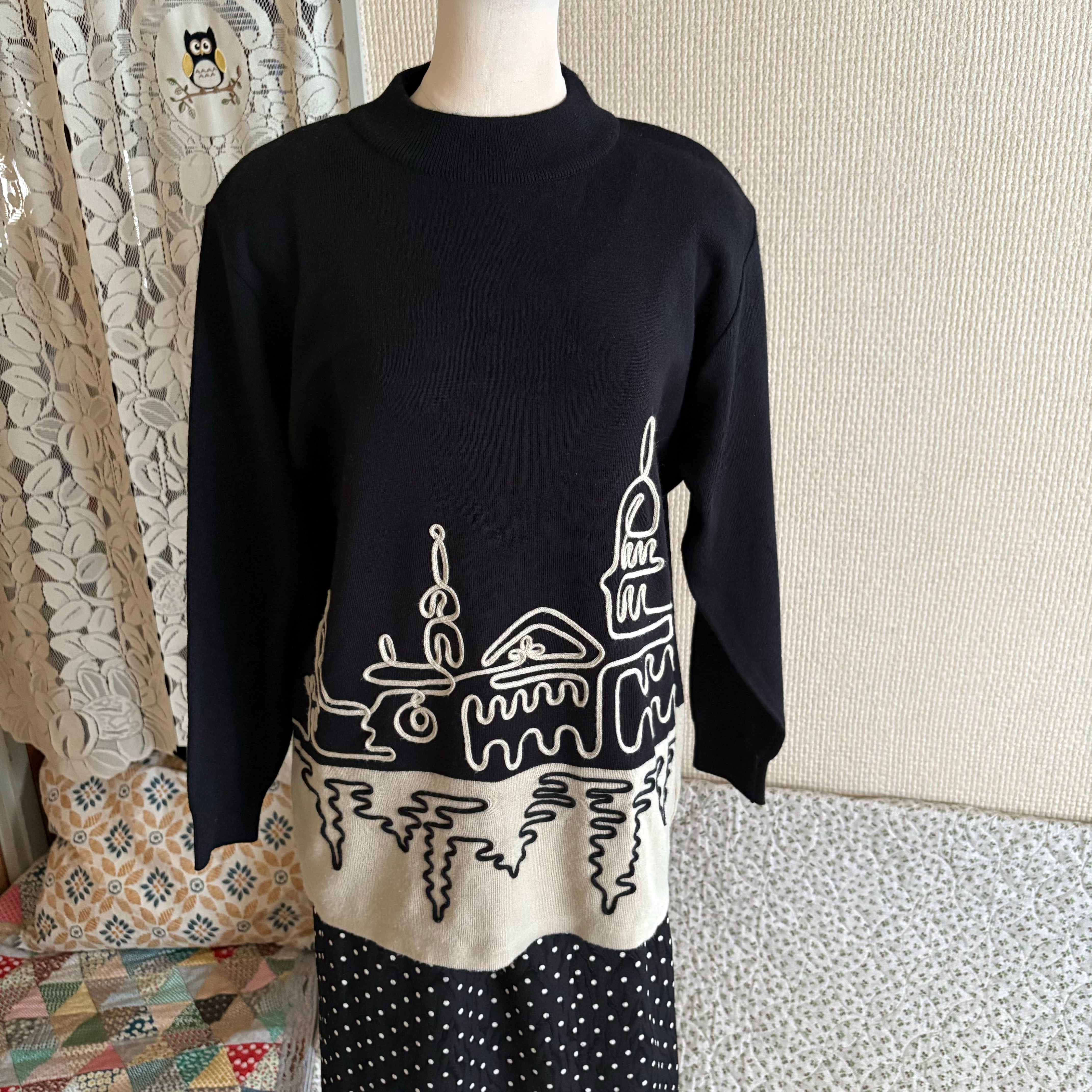 80s コード刺繍 バイカラー セーター 昭和レトロヴィンテージ古着