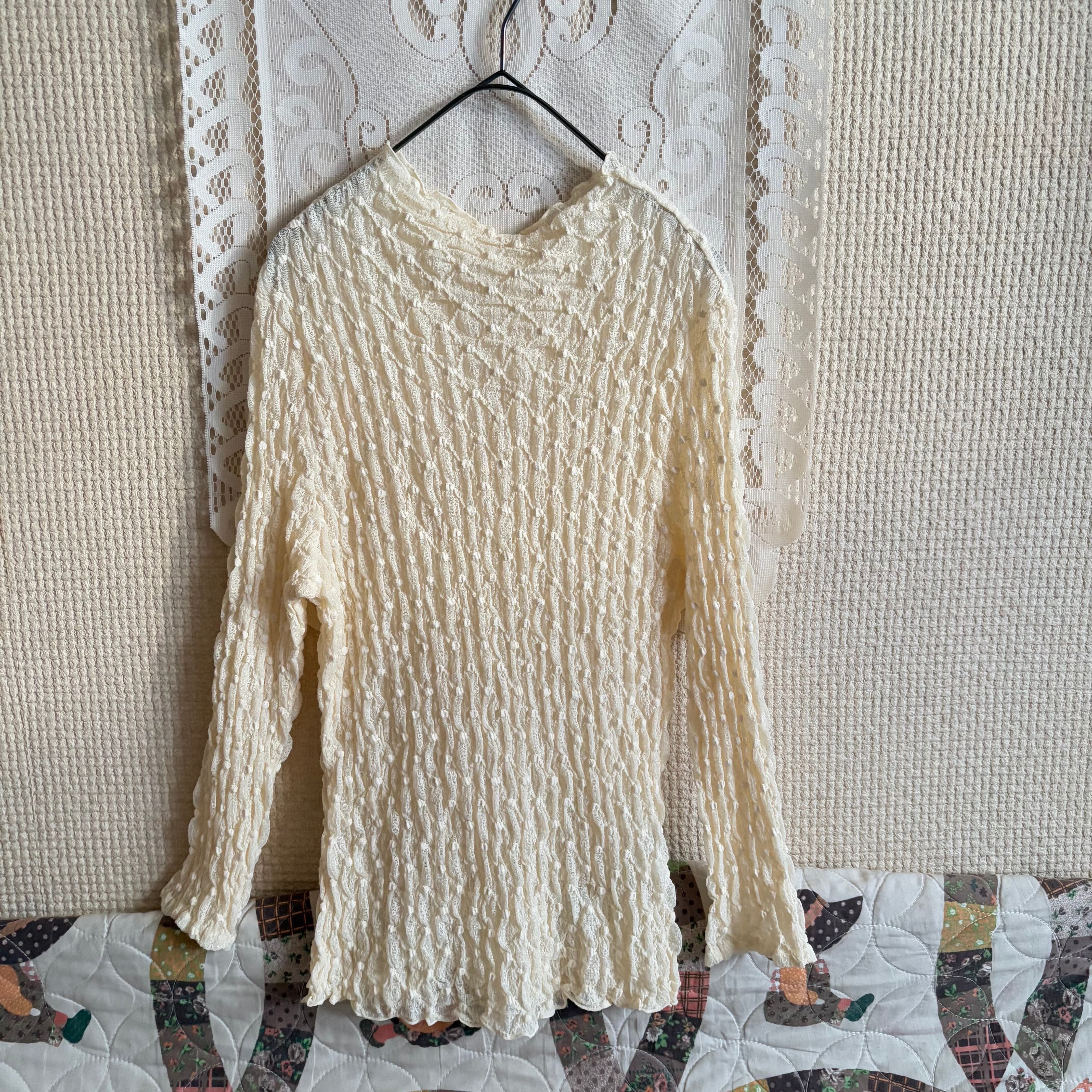 80s 白レース風 スモッキングカットソー 昭和レトロヴィンテージ古着