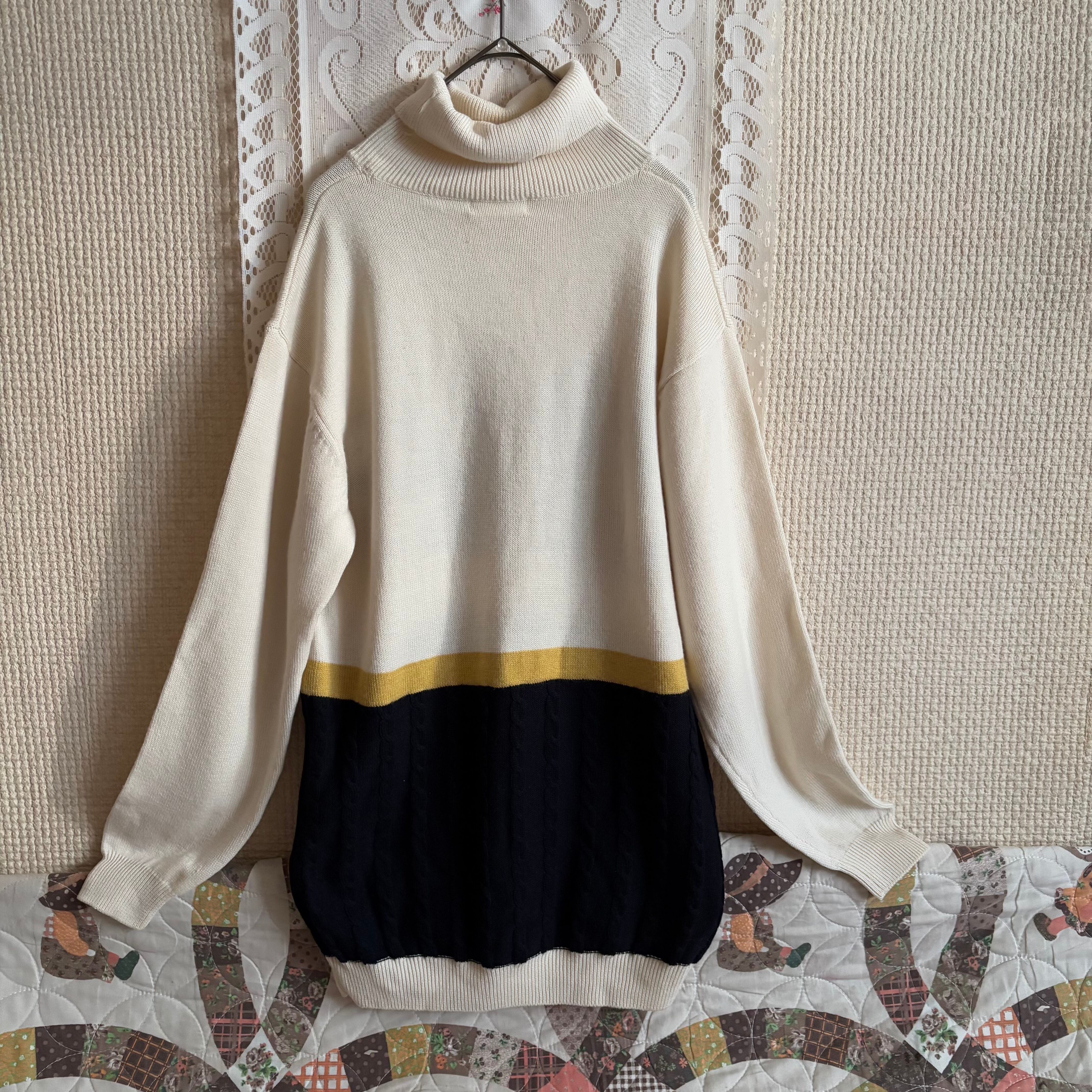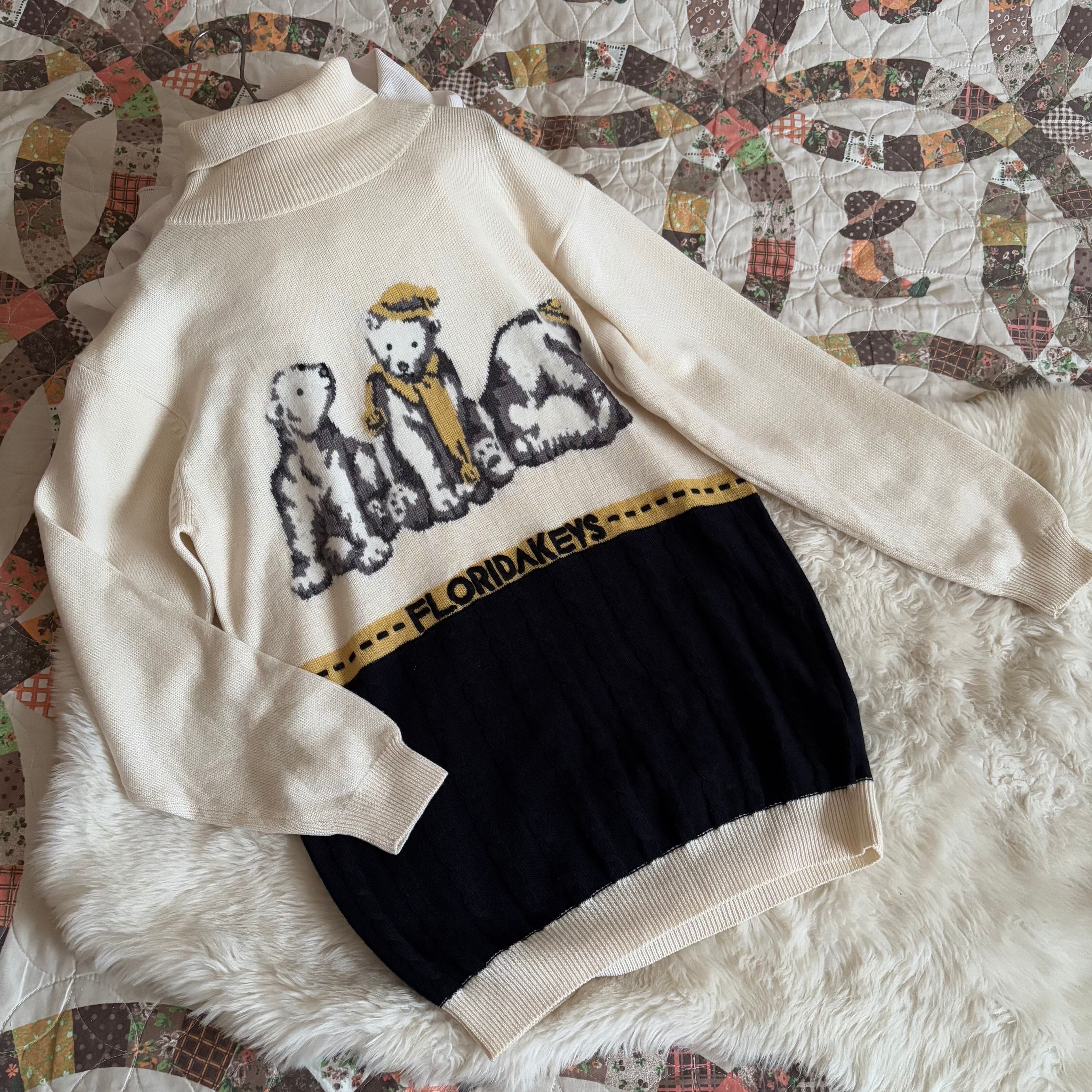 80s 白熊柄 タートルネック ニットセーター 昭和レトロヴィンテージ古着